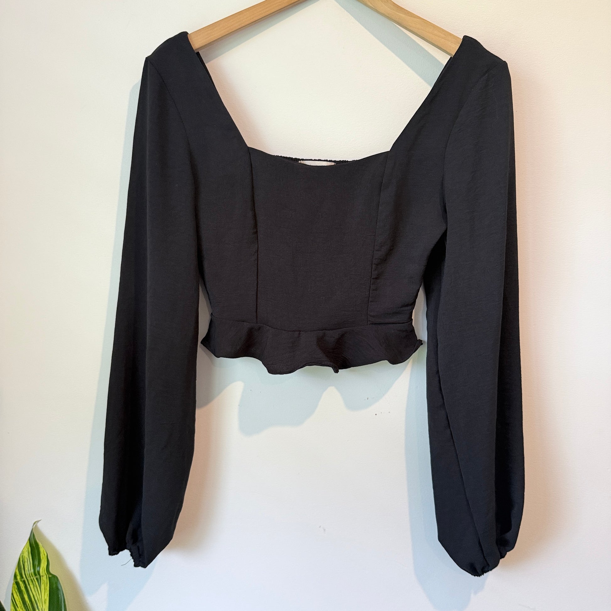 Witchery Size S Rust Square-Neck Puff Sleeve Knotted Top