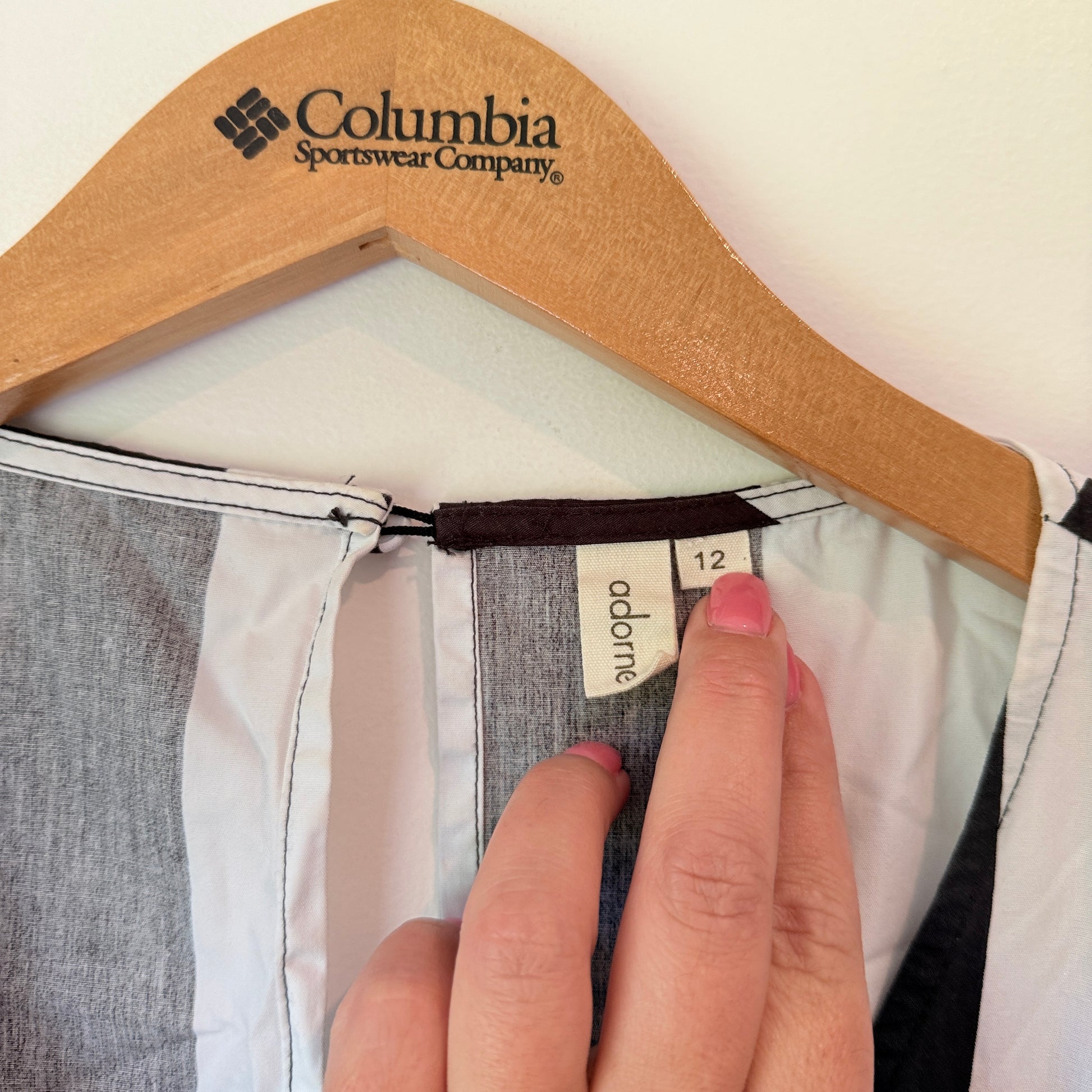 Adorne Size 12 Black & White Striped Cotton V-Neck Top