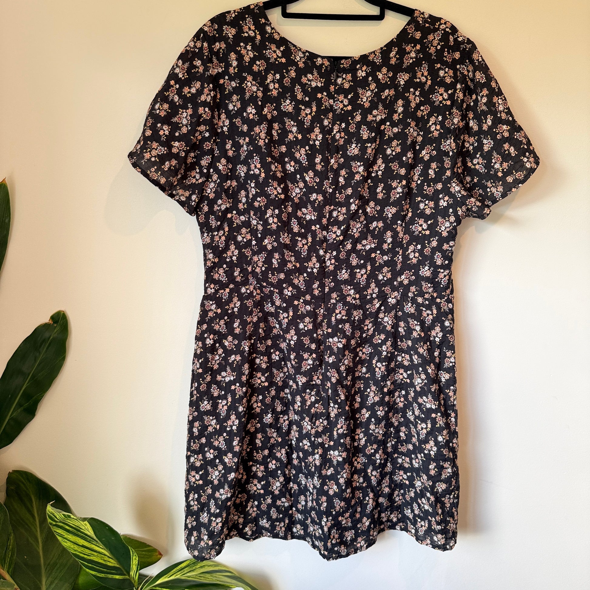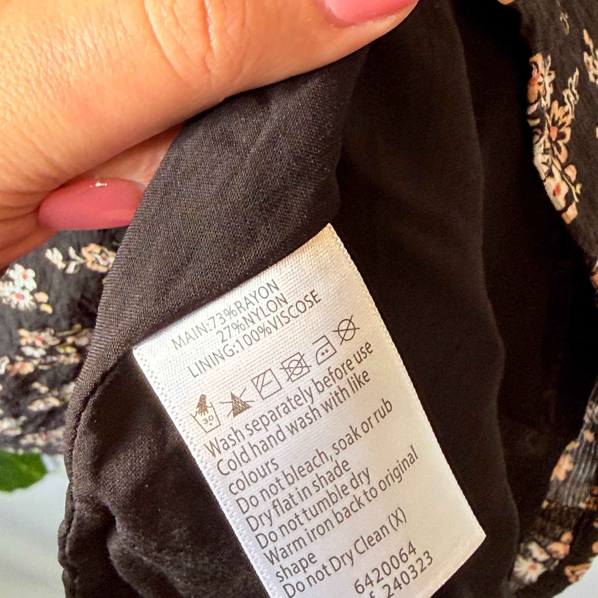 - Colour: Black with peach and white floral print
