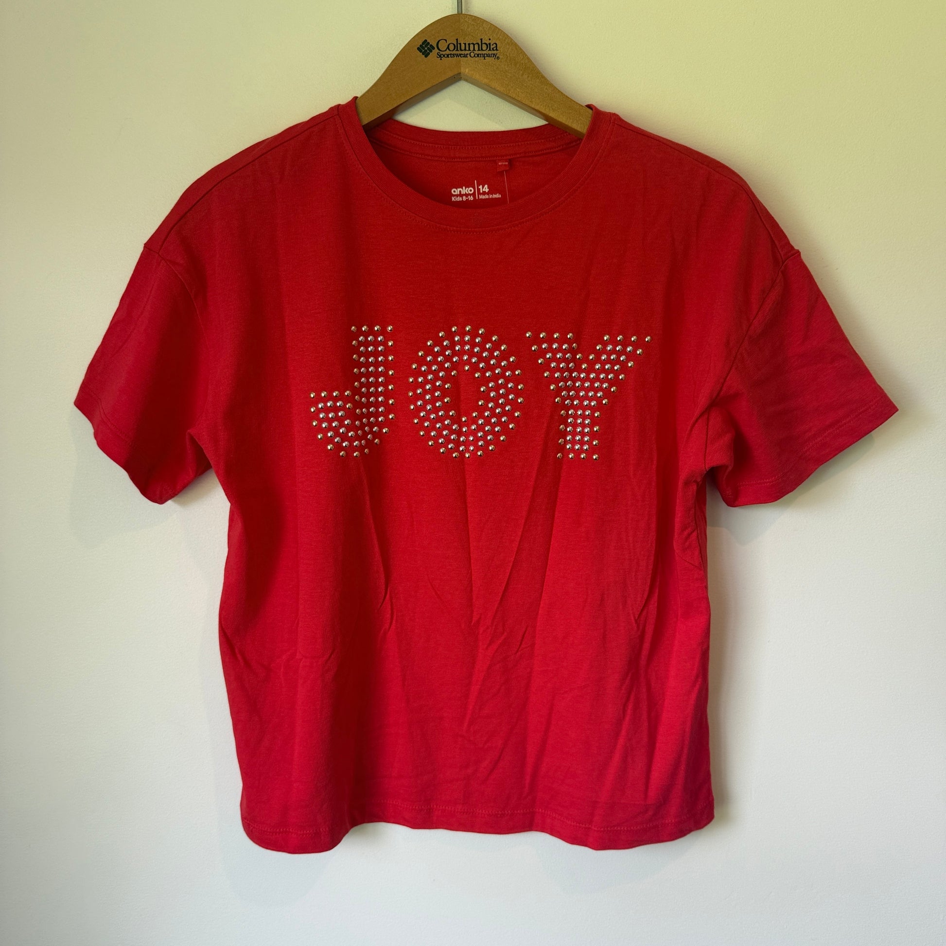 Anko Red "JOY" Studded Cotton T-Shirt - Size Kids 14