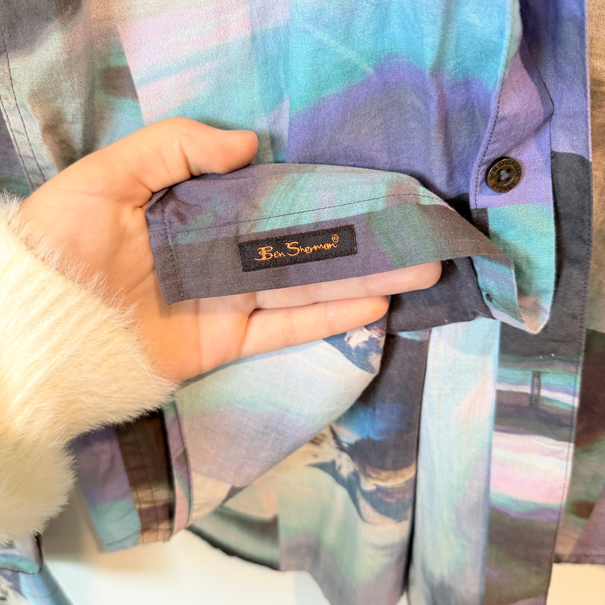 Ben Sherman Size S Long-Sleeved Multi-Color Abstract Button-Down Shirt
