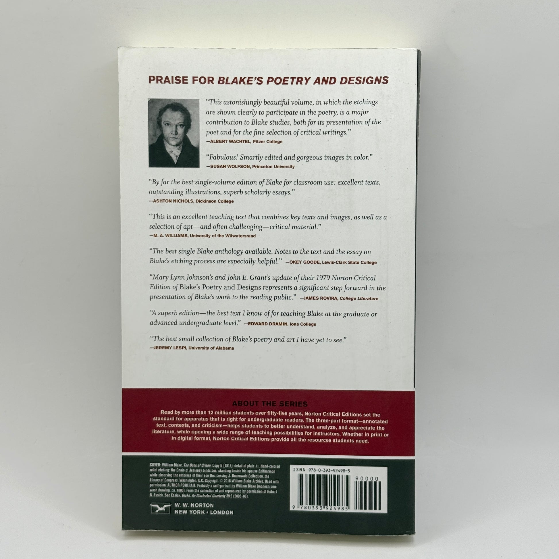 The Norton Critical Editions version of Blake's Poetry and Designs has received mixed reviews from customers. While some are pleased with the book's excellent condition on arrival, and how convenient and content-filled it is, others express frustrations over the poor book quality, weak binding, faint text, and flimsy paper. Additionally, one reviewer points out that the Amazon page lists the wrong edition of the book, causing confusion among buyers. Nevertheless, the book receives praise for presentation and colorful graphics that bring Blake's work to life.