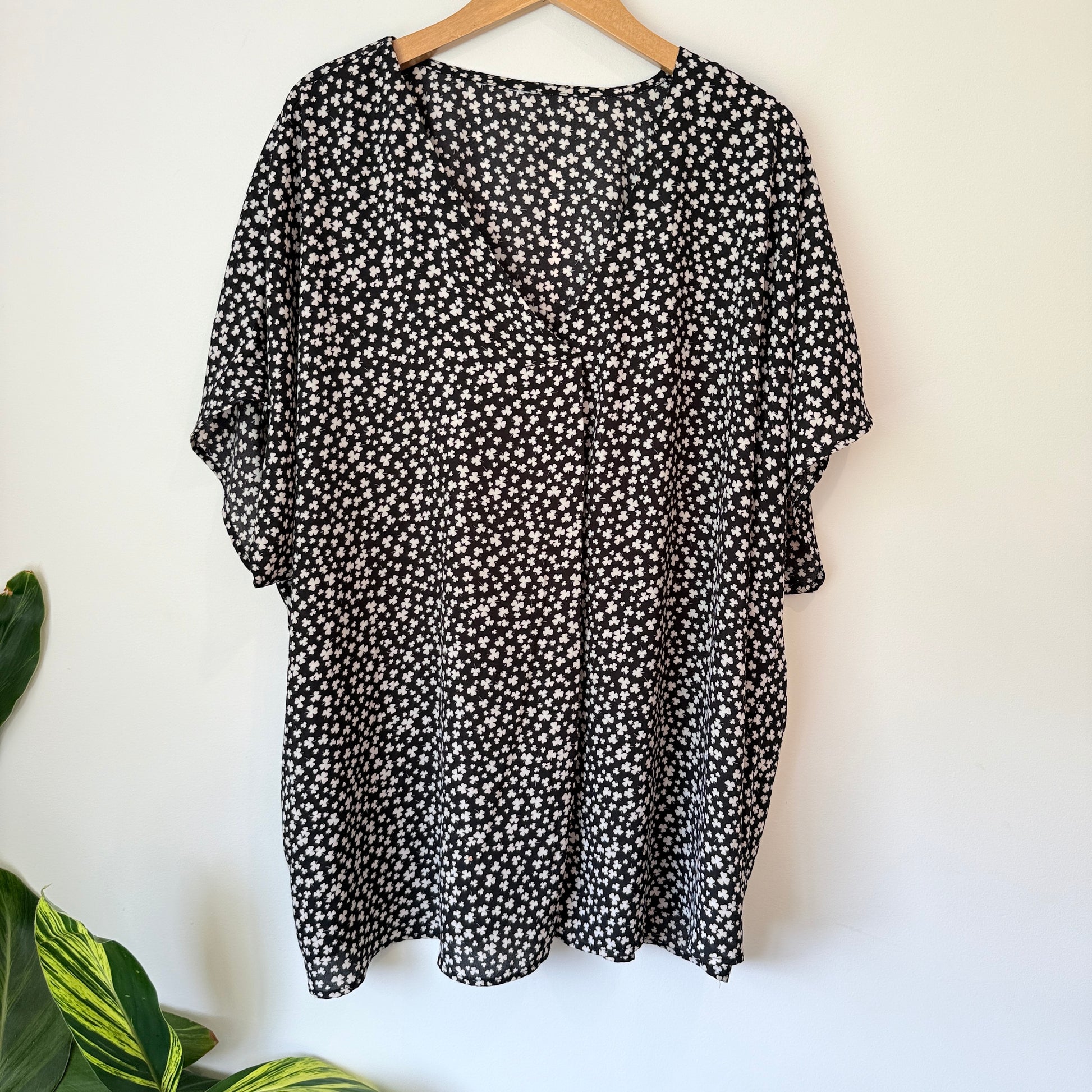 Brand Unknown Size U/Arm 79cm Black & White Floral Blouse