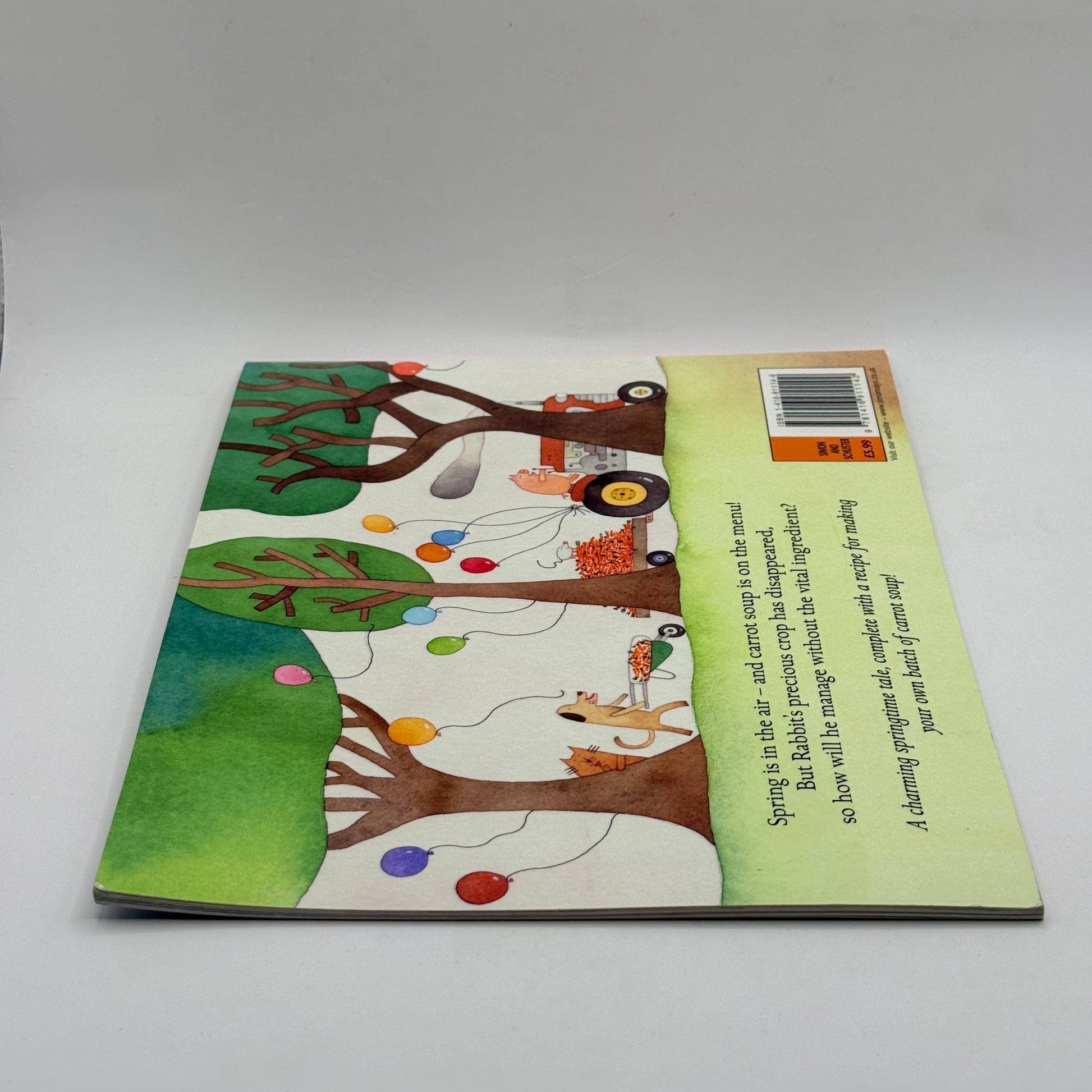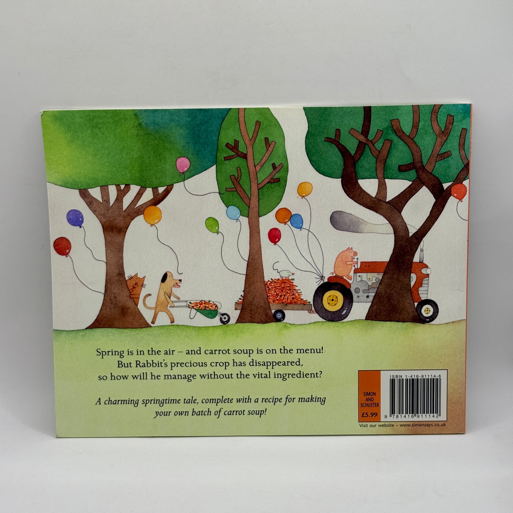 Spring means one thing to Rabbit - carrot soup! So when the time is right, he plants the carrot seeds, waters them, and waits very patiently for the carrots to grow. But something is wrong - when Rabbit finally arrives at the patch to collect his prize crop, the carrots have disappeared into thin air! Rabbit's friends seem to draw a blank when he asks for help locating the missing crop. But when he returns home, sad and hungry, can you guess what his friends have secretly prepared for his dinner?