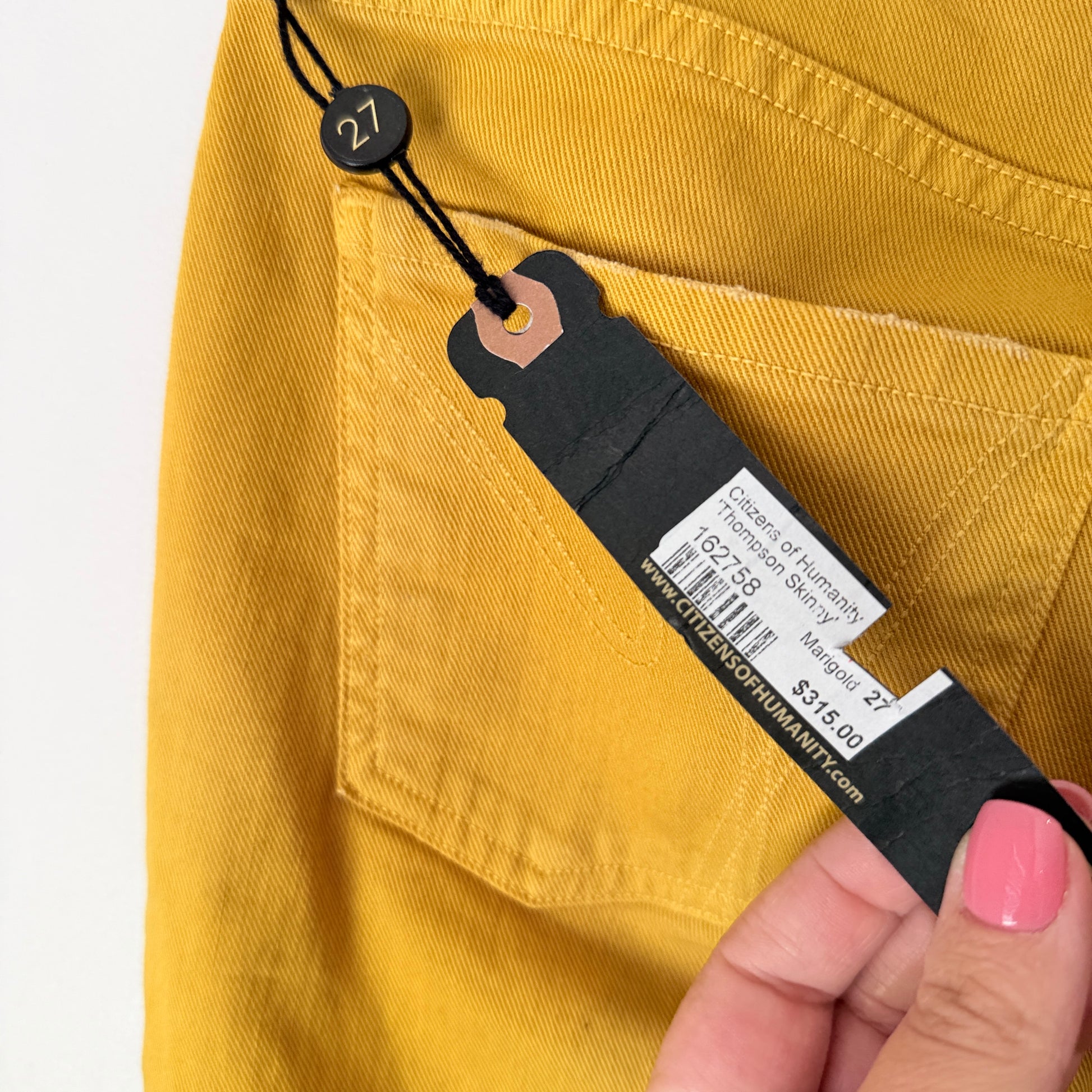 This is an awesome piece for anyone wanting to inject a vibrant colour into their wardrobe! This pair features the Thompson Skinny fit by Citizens of Humanity, a versatile silhouette described as a Medium Rise 29" Skinny, making it a comfortable staple for everyday wear. The Marigold colour is a bold, beautiful yellow that offers a unique alternative to classic denim. The fabric has 2% Elastane for great stretch and comfort, ensuring that while they look fantastic, they also feel good on. If you’re after a high-quality designer pant that brings a bit of sunshine to your style, this is definitely a handy one to have on hand.