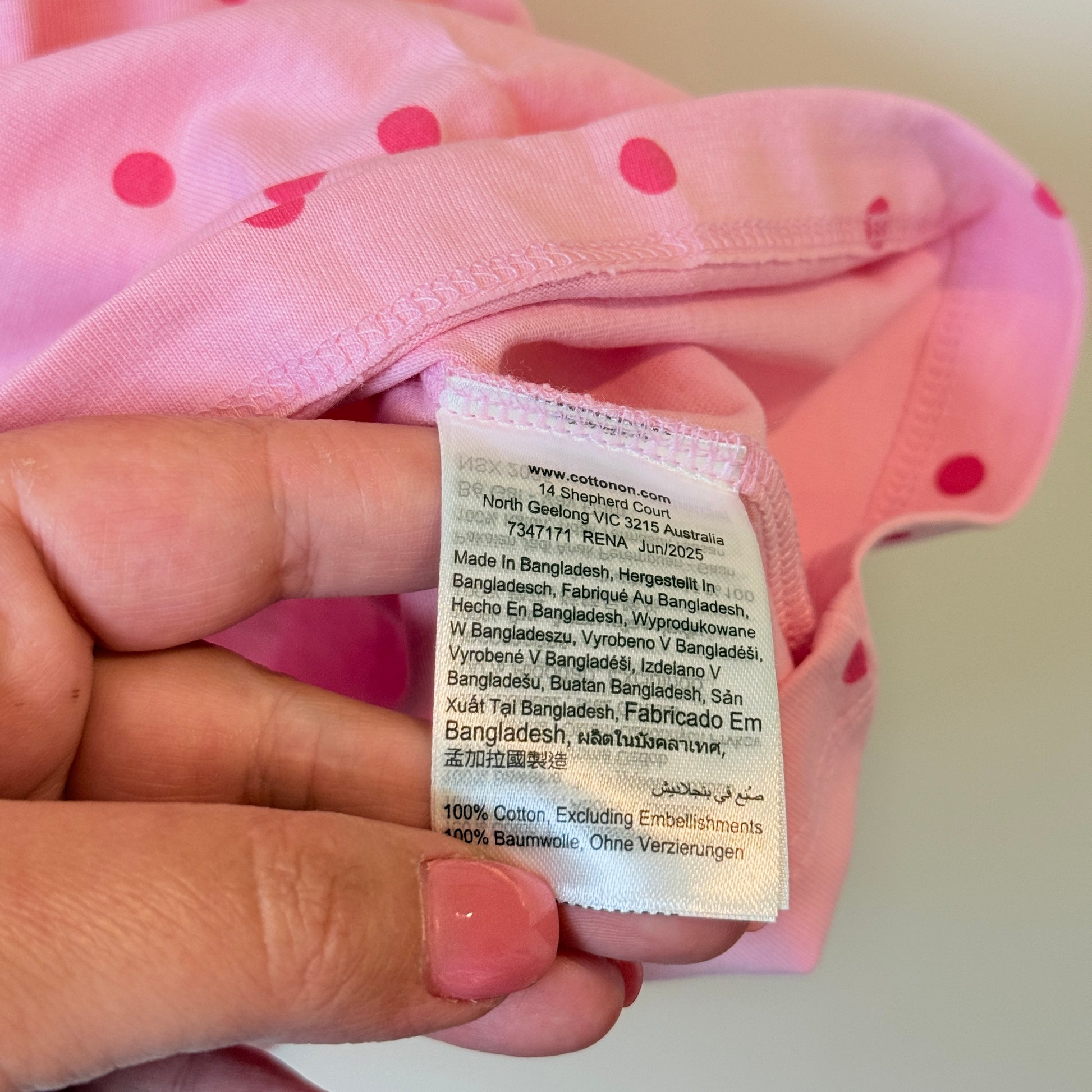 This delightful polka dot dress from Cotton On Kids is a perfect choice for sunny days and outdoor adventures. Featuring a vibrant "Fairy Pink" base with "Raspberry" spots, it brings a pop of colour that is sure to be a hit. The dress is designed with a comfortable round neck and a gathered waist that flows into a relaxed skirt, giving plenty of room for movement. Made from 100% cotton, it is lightweight and soft against the skin, making it an ideal option for keeping cool at the beach, park, or family gatherings.
