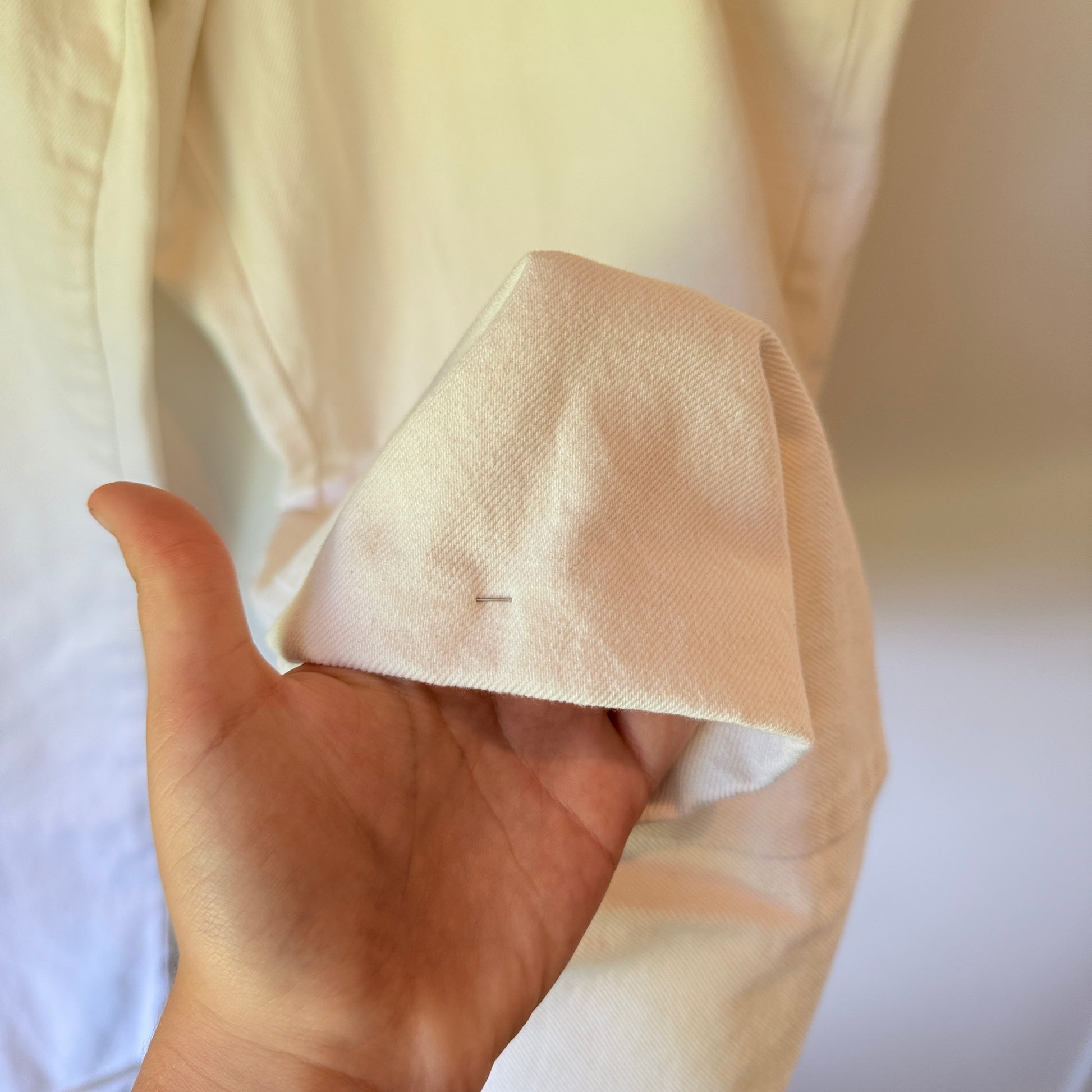 Cuffs are raw edge pinned for shortening, but otherwise overall in excellent used condition