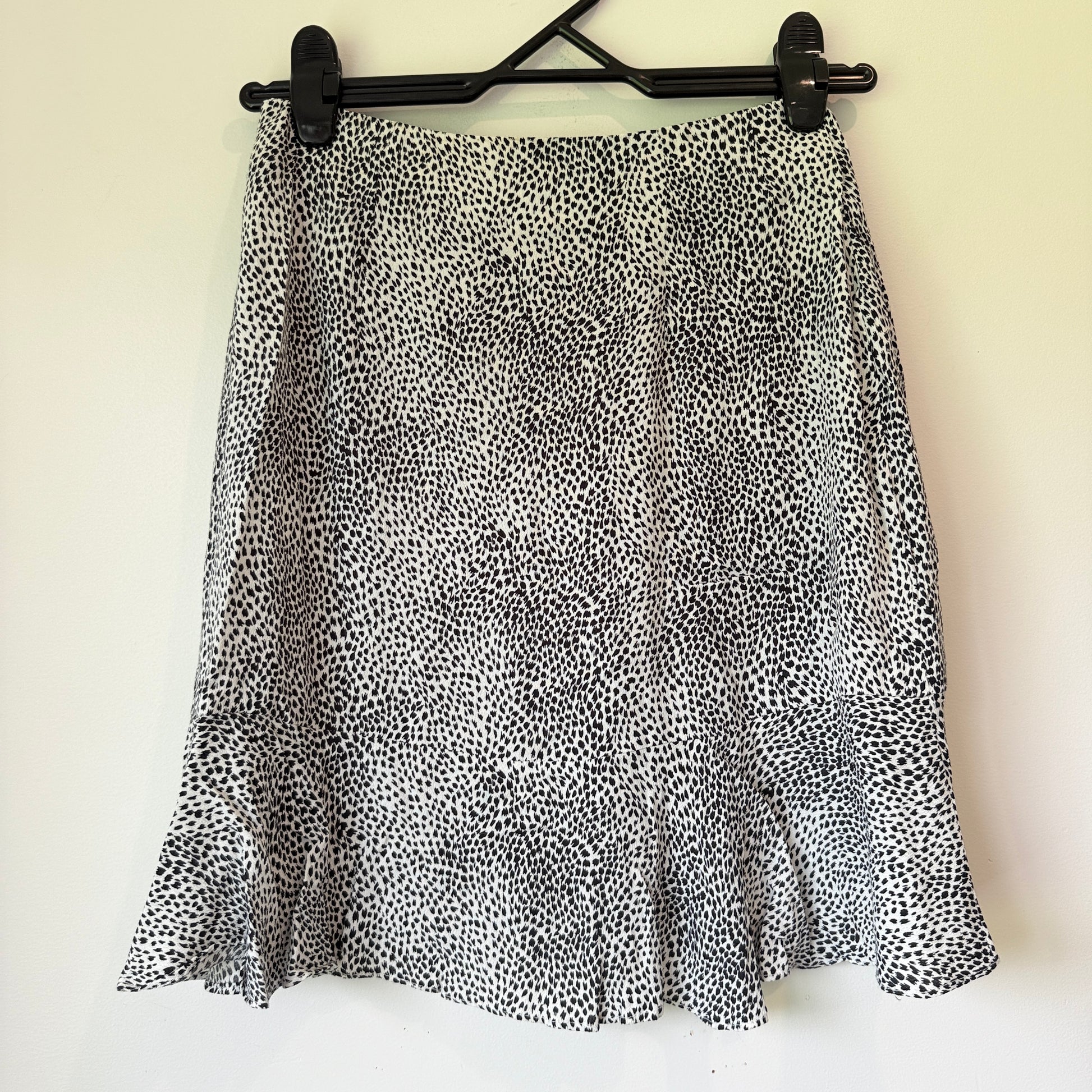 Dotti Size 6 Black & White Leopard Print Mini Skirt