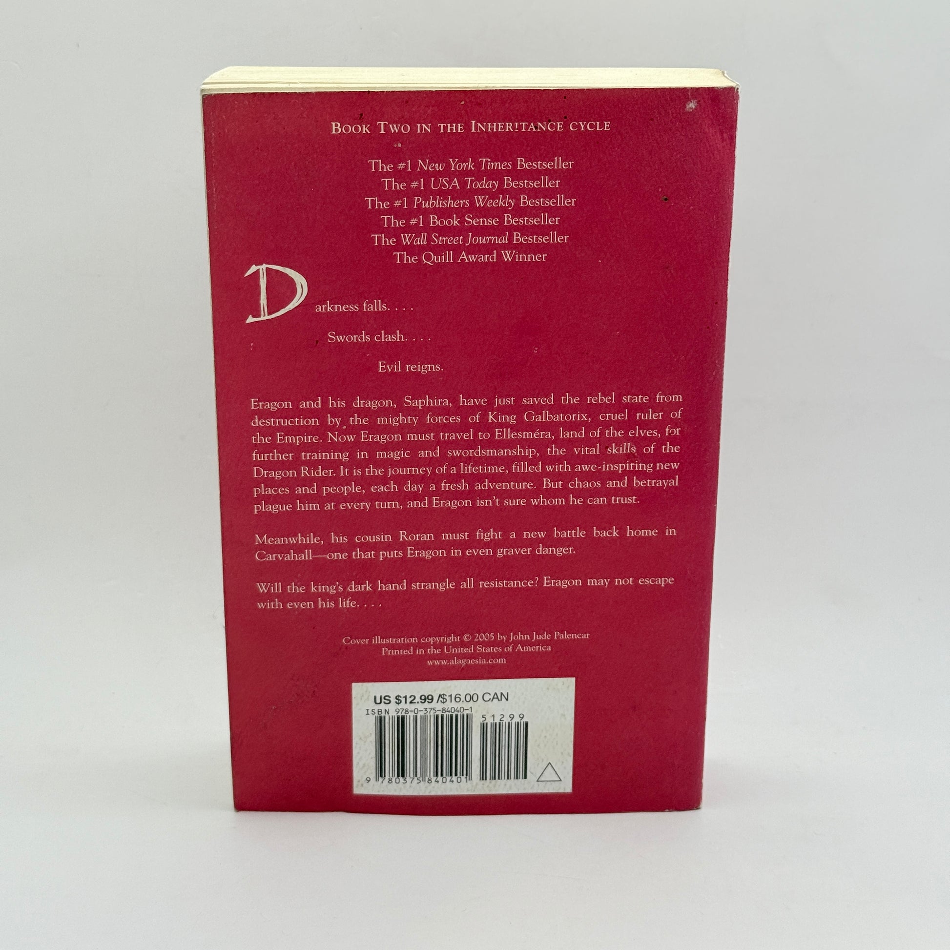 Darkness falls… despair abounds… evil reigns… Eragon and his dragon, Saphira, have just saved the rebel state from destruction by the mighty forces of King Galbatorix. Now Eragon must travel to Ellésmera, land of the elves, for further training in the skills of the Dragon Rider: magic and swordsmanship. But chaos and betrayal plague him at every turn, and nothing is what it seems. Before long, Eragon doesn’t know whom he can trust.