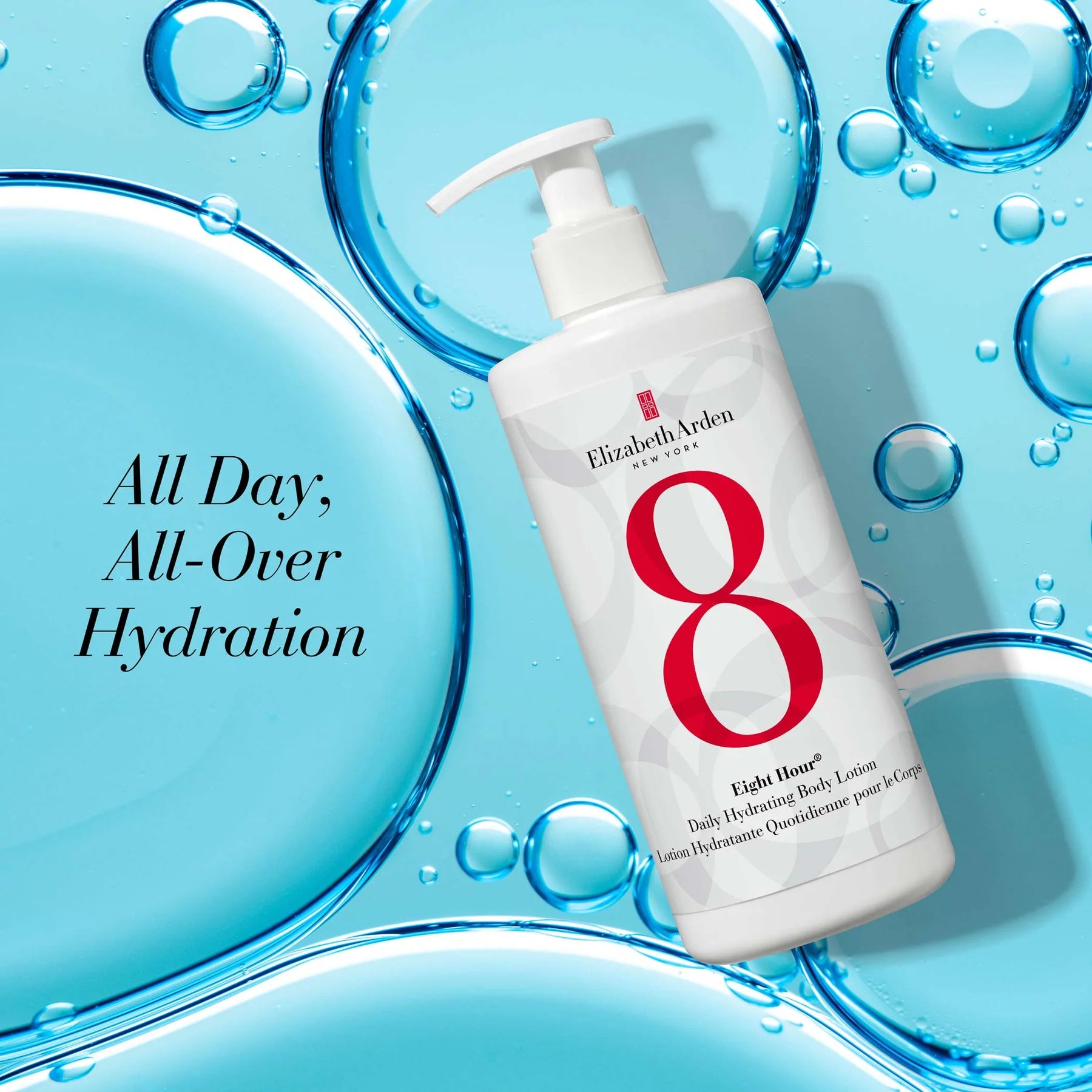 Achieve all day, all-over hydration with Elizabeth Arden’s NEW Eight Hour® Daily Hydrating Body Lotion. A multi-benefit, lightweight and long-lasting lotion that protects and conditions dry skin. Infused with naturally derived Shea Butter, Avocado Oil, Glycerin, and a natural origin Prebiotic Complex to help relieve dry skin and strengthens skin’s moisture barrier leaving hydrated, luminous and healthy-looking skin. Fast absorbing, non-greasy formula with an uplifting scent softens and smooths skin. To use, simply apply liberally all over body, morning and night. Vegan.