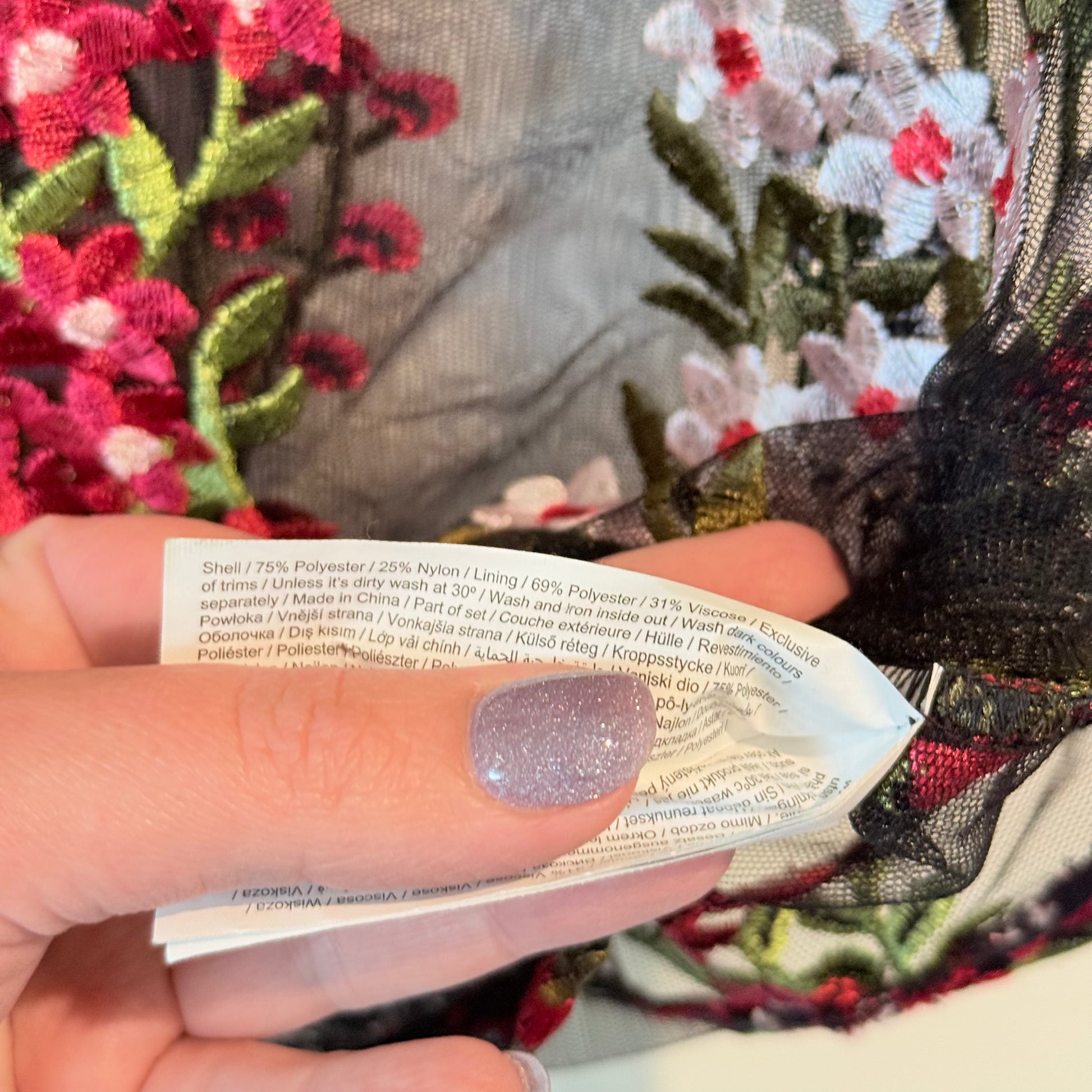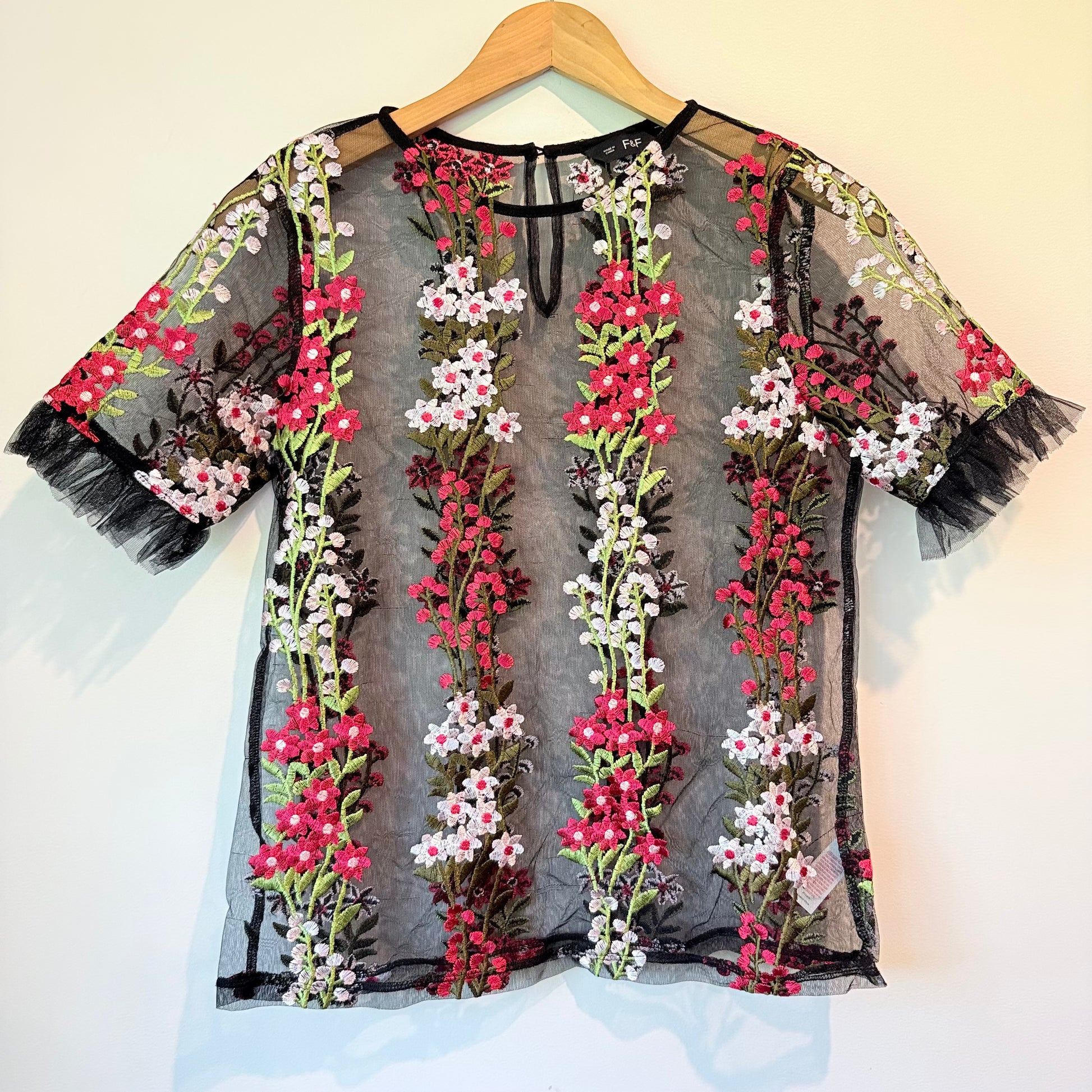 F&F Size 2 Black Sheer Floral Embroidered Blouse