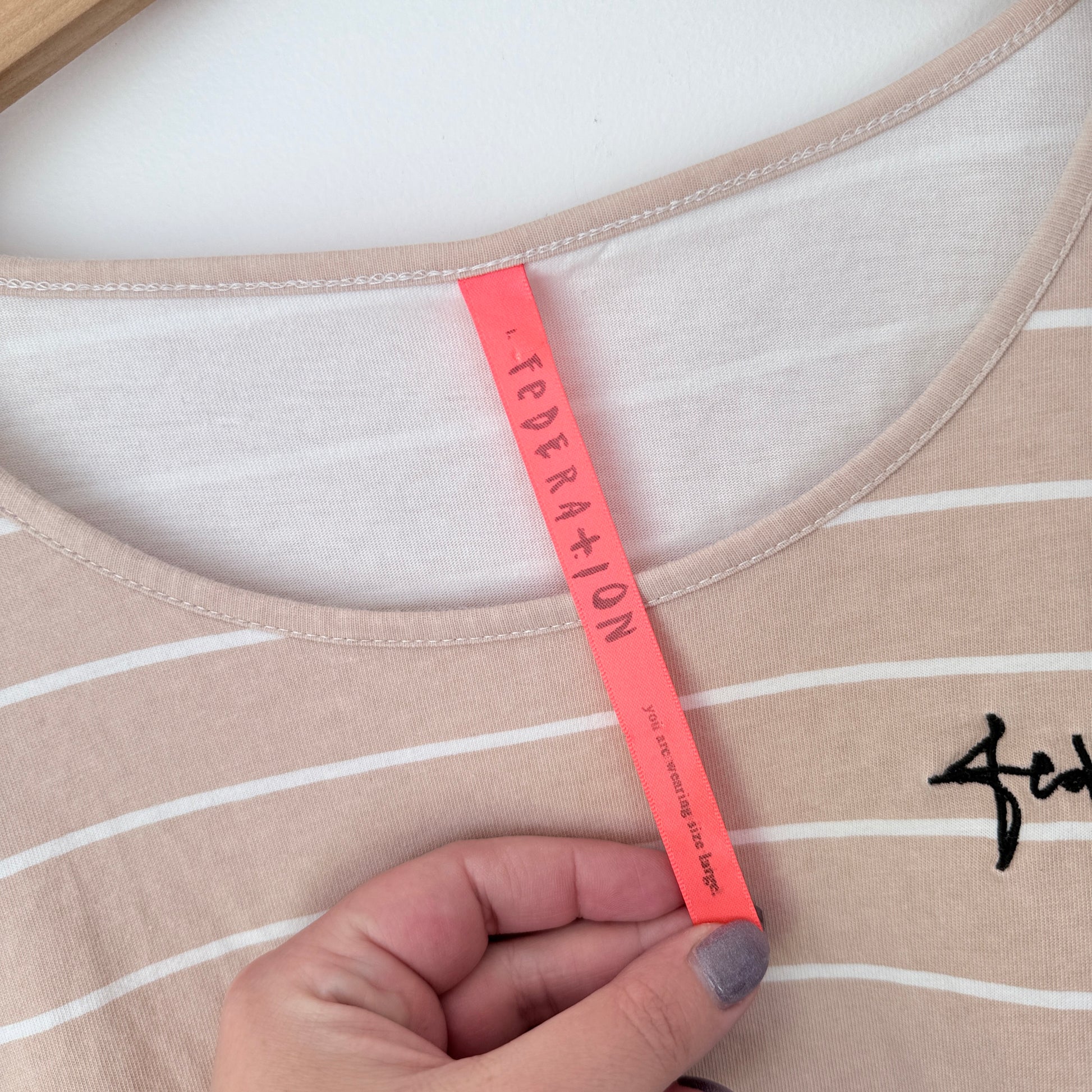 Federation Beige White Striped T-Shirt