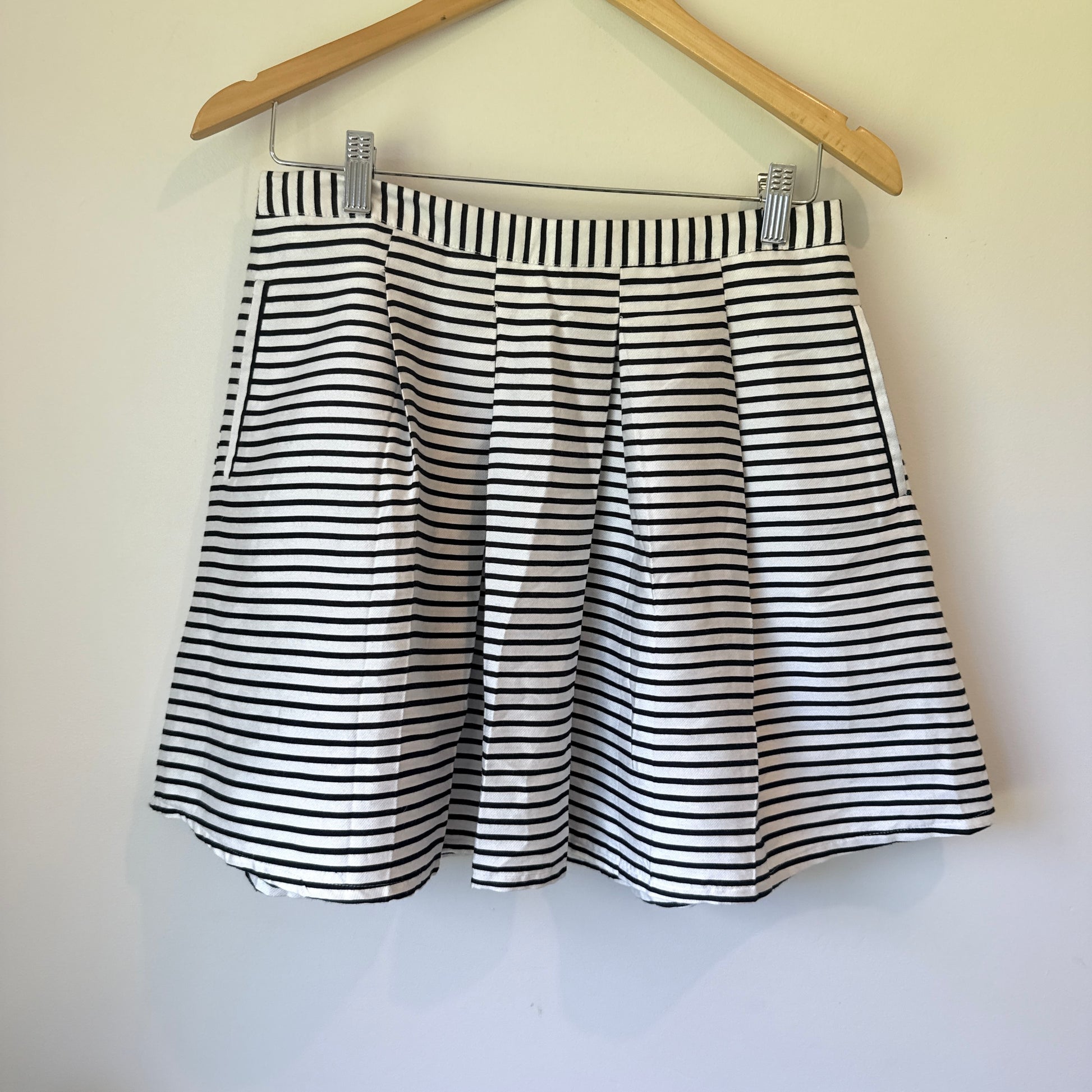 Forever 21 Striped Pleated Mini Skirt Black & White - Size L