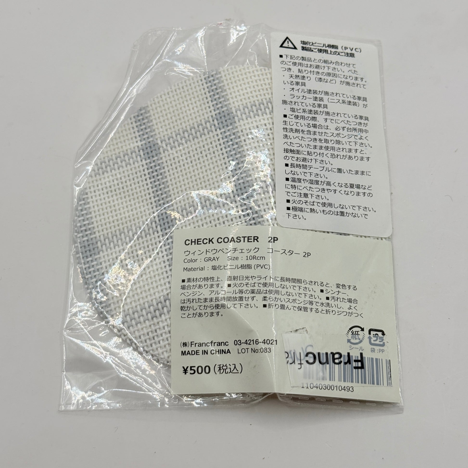 Francfranc Check Coaster Gray 2 Pack