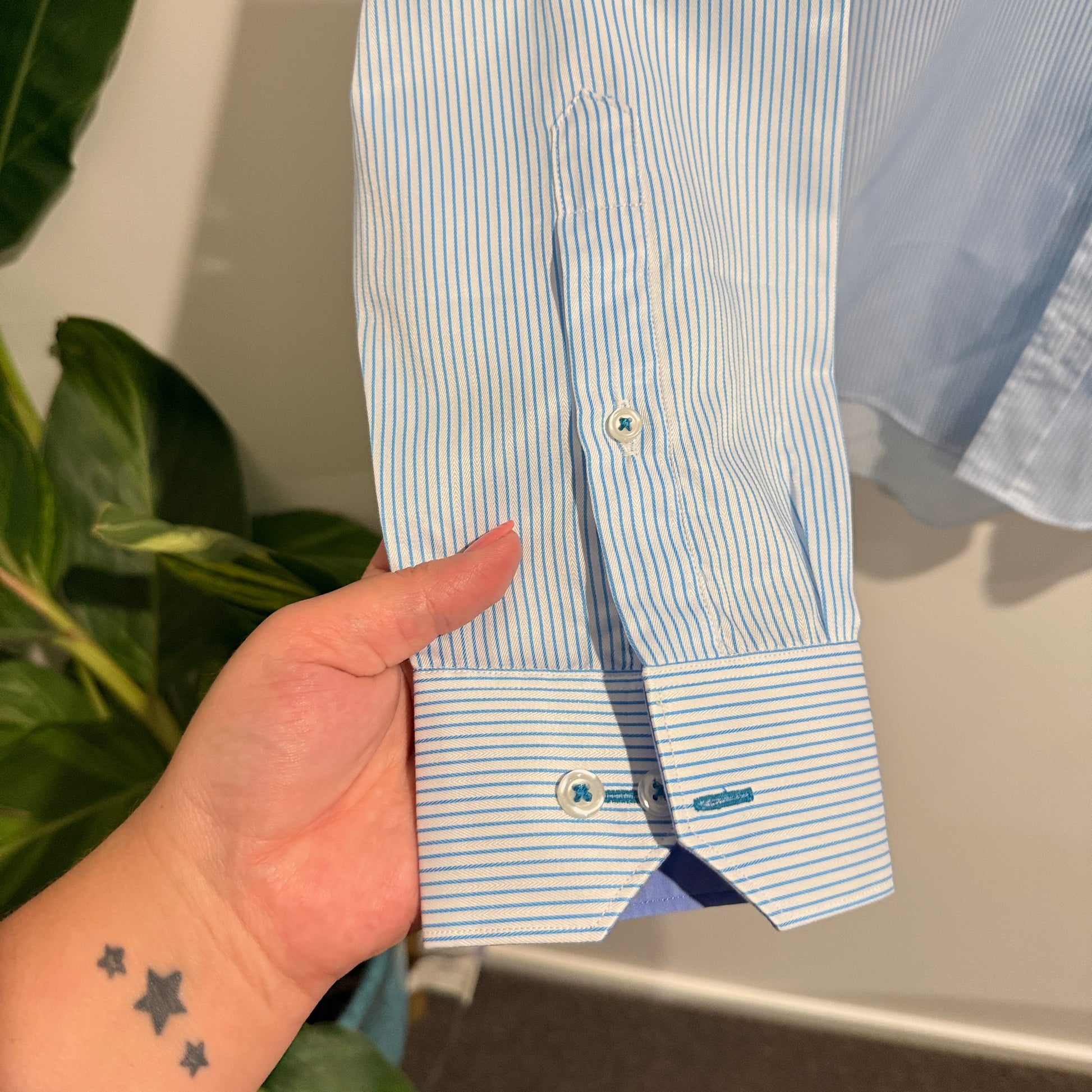 Geoffrey Beene Size 42 Light Blue & White Striped Long-Sleeve Shirt