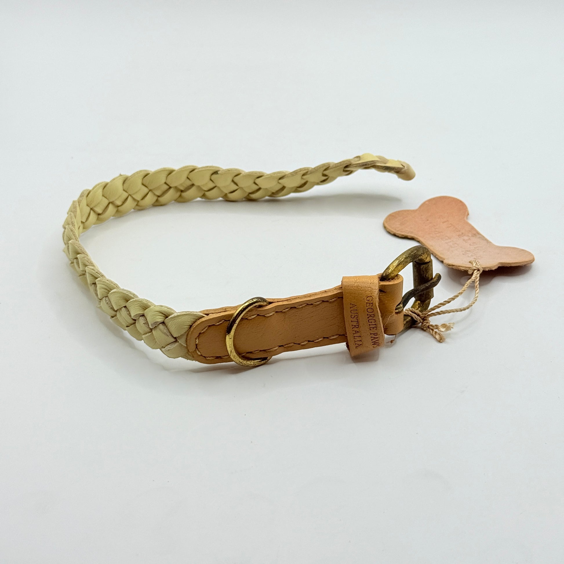Looking for something a bit different for your small mate? This beautiful braided collar from Georgie Paws Australia is a lovely, unique piece that offers a gentle texture and a sophisticated look. Made from quality leather, the braided style is eye-catching and the light colour makes it perfect for spring and summer adventures, or just adding a subtle pop of colour to your dog's daily outfit. The solid brass hardware ensures this isn't just a looker—it's built to last. This Small size is a great option for smaller dogs who still deserve that touch of high-end style.