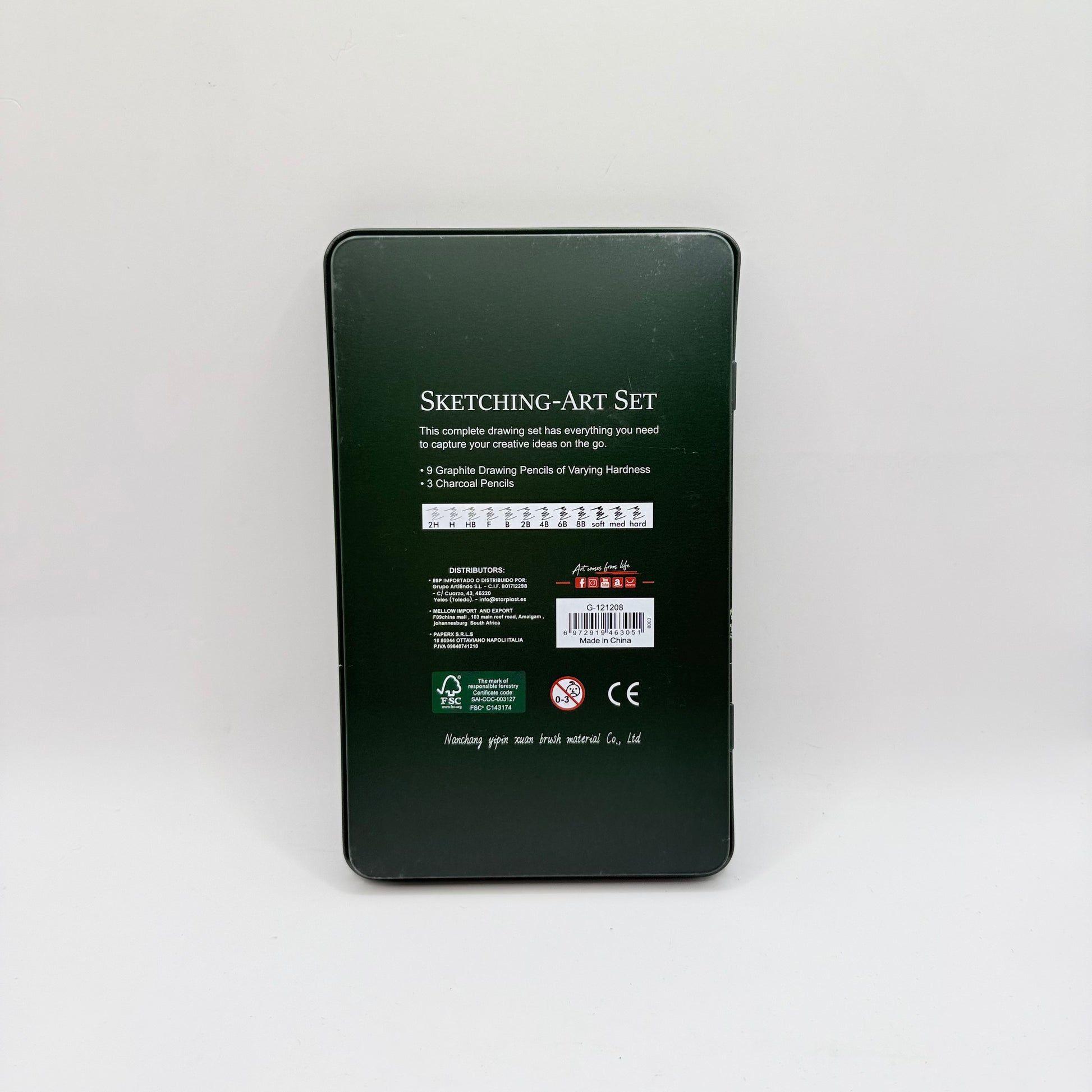 The kit includes a full range of pencils essential for quality sketching: 9 Graphite Drawing Pencils of varying hardness (from 2H for light lines to 8B for deep shading), and 3 Charcoal Pencils (Soft, Medium, and Hard). It is brand new and unused. This is a great, high-value set for students, beginners, or experienced artists who need a compact, reliable sketching kit.