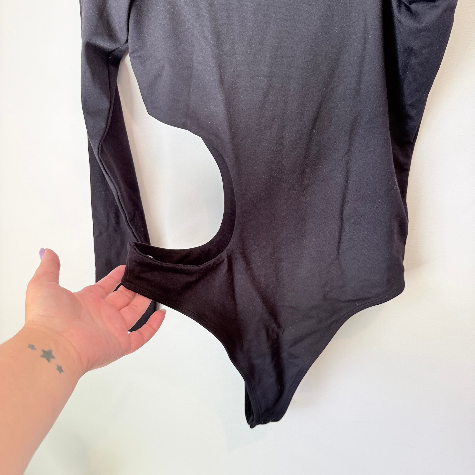 Glassons Asymmetrical Cut-Out Long Sleeve Bodysuit – Black Size M