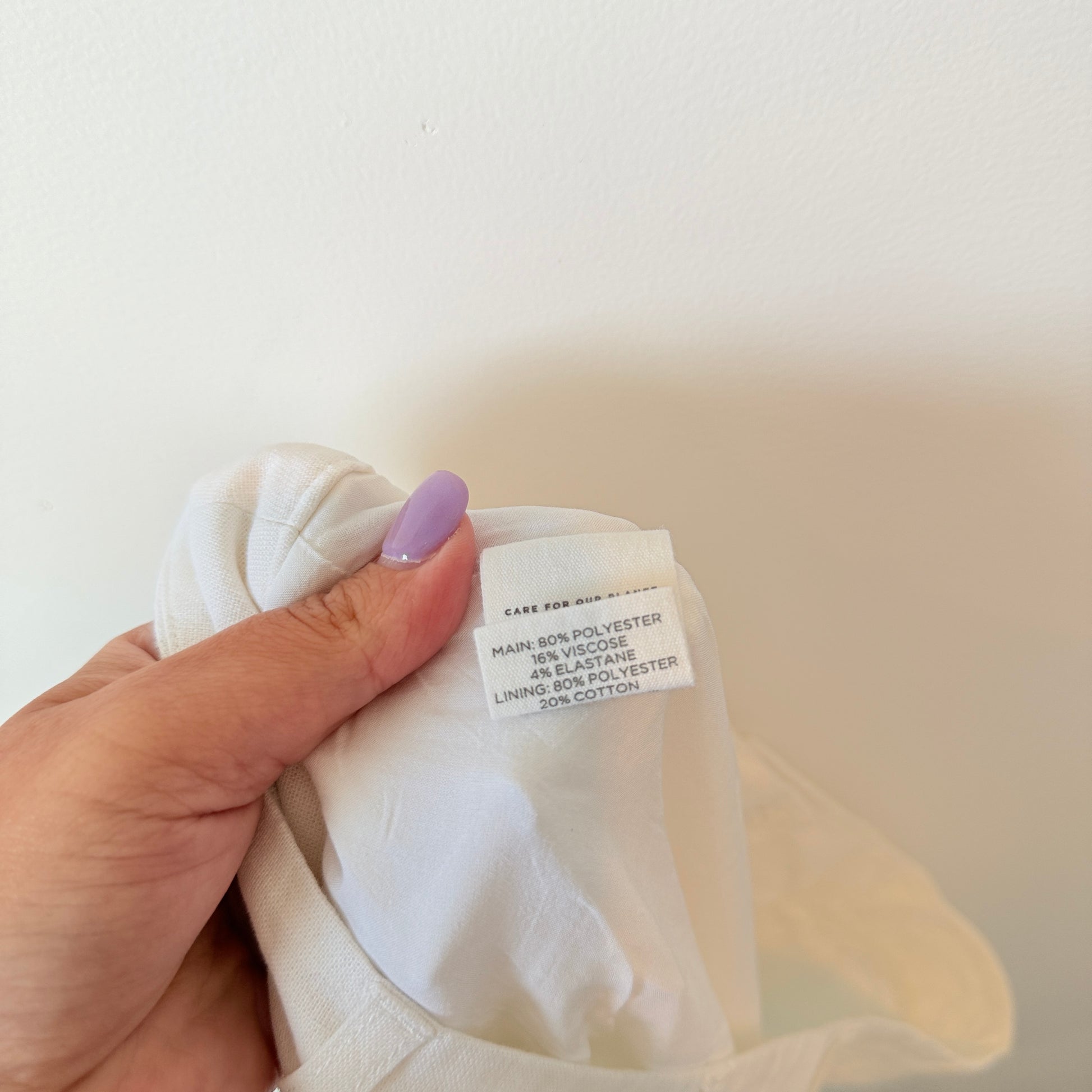 - Main Fabric: 80% Polyester, 16% Viscose, 4% Elastane