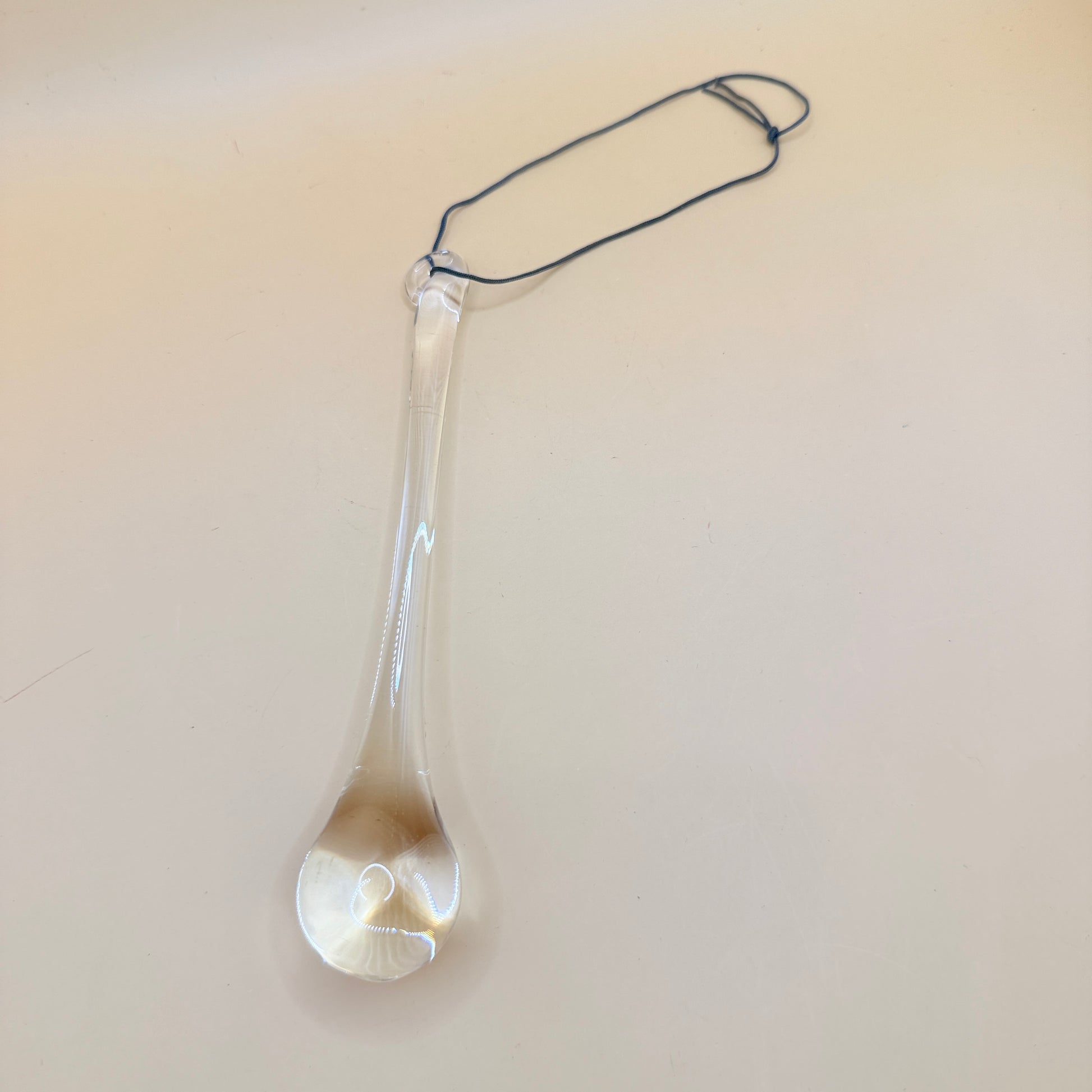 This graceful glass teardrop ornament adds a soft, airy sparkle wherever you place it. The smooth, elongated shape and gentle rounded base catch the light beautifully, giving it a floating, delicate look. It’s a sweet one to hang in a window, display on a hook, or use as a decorative accent in a calming corner of your home. With its slender profile and unique artisan finish, it brings a touch of simple charm without overpowering your space.