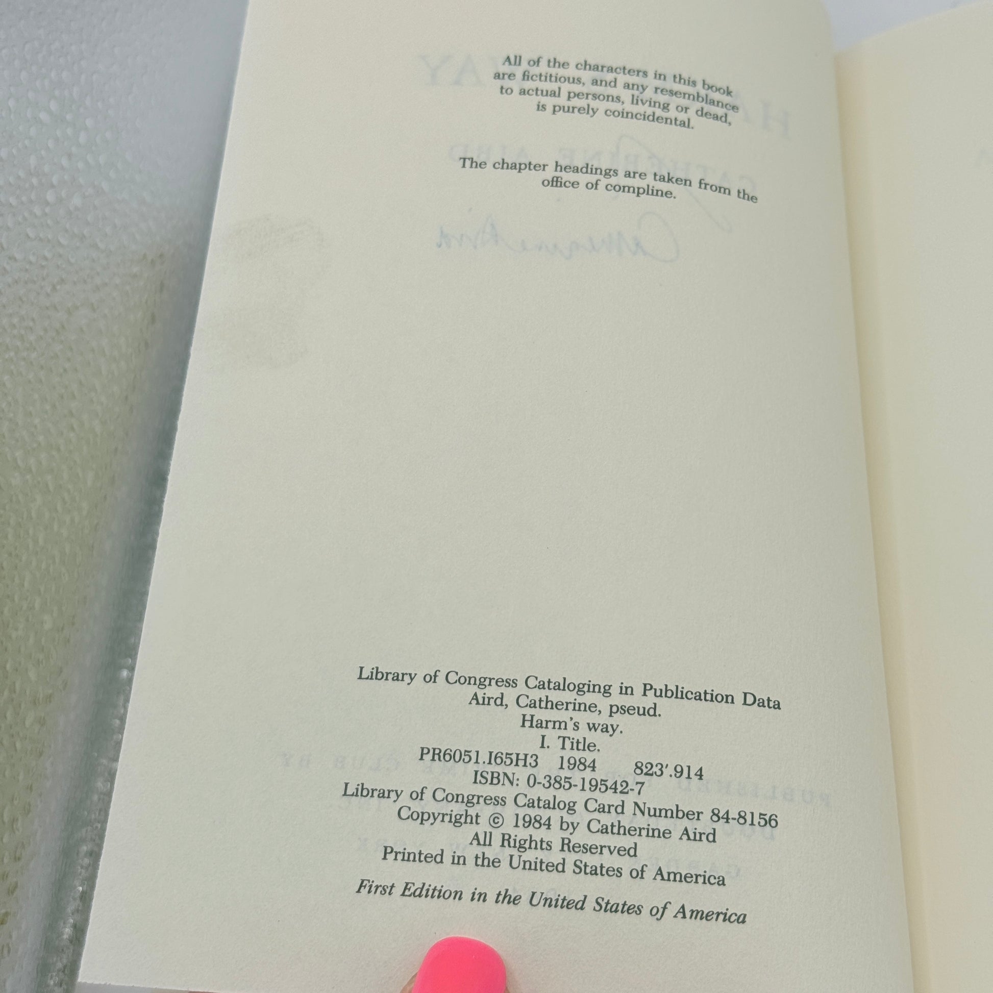 Harm's Way by Catherine Aird (1984 USA First Ed)