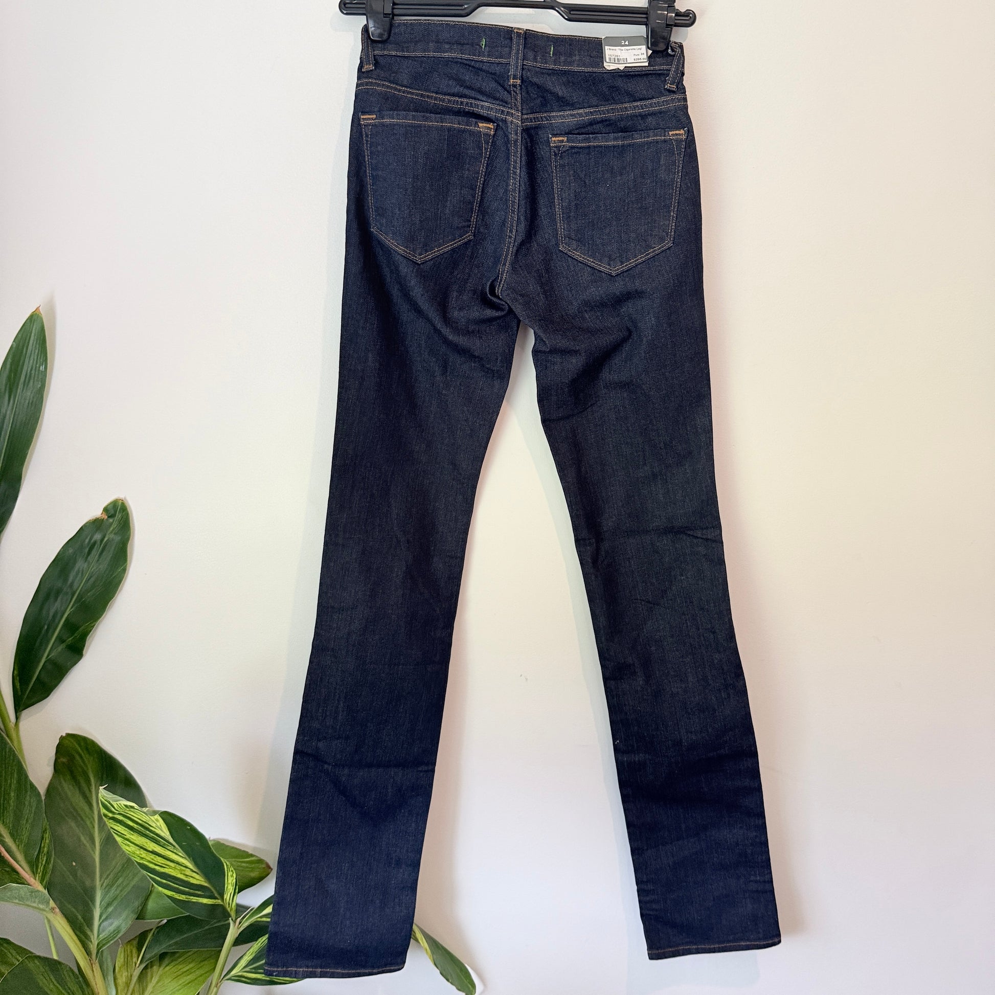 Discover the iconic silhouette of J Brand with this classic, high-quality pair of jeans. They feature The Cigarette Leg cut, designed to be slim through the leg with a straight opening, creating a clean, tailored finish. The deep, rich dark wash denim makes them incredibly versatile, easily transitioning from smart-casual daywear to an elevated evening look. This pair offers style and comfortable structure, perfect for a modern, foundational piece in your wardrobe.