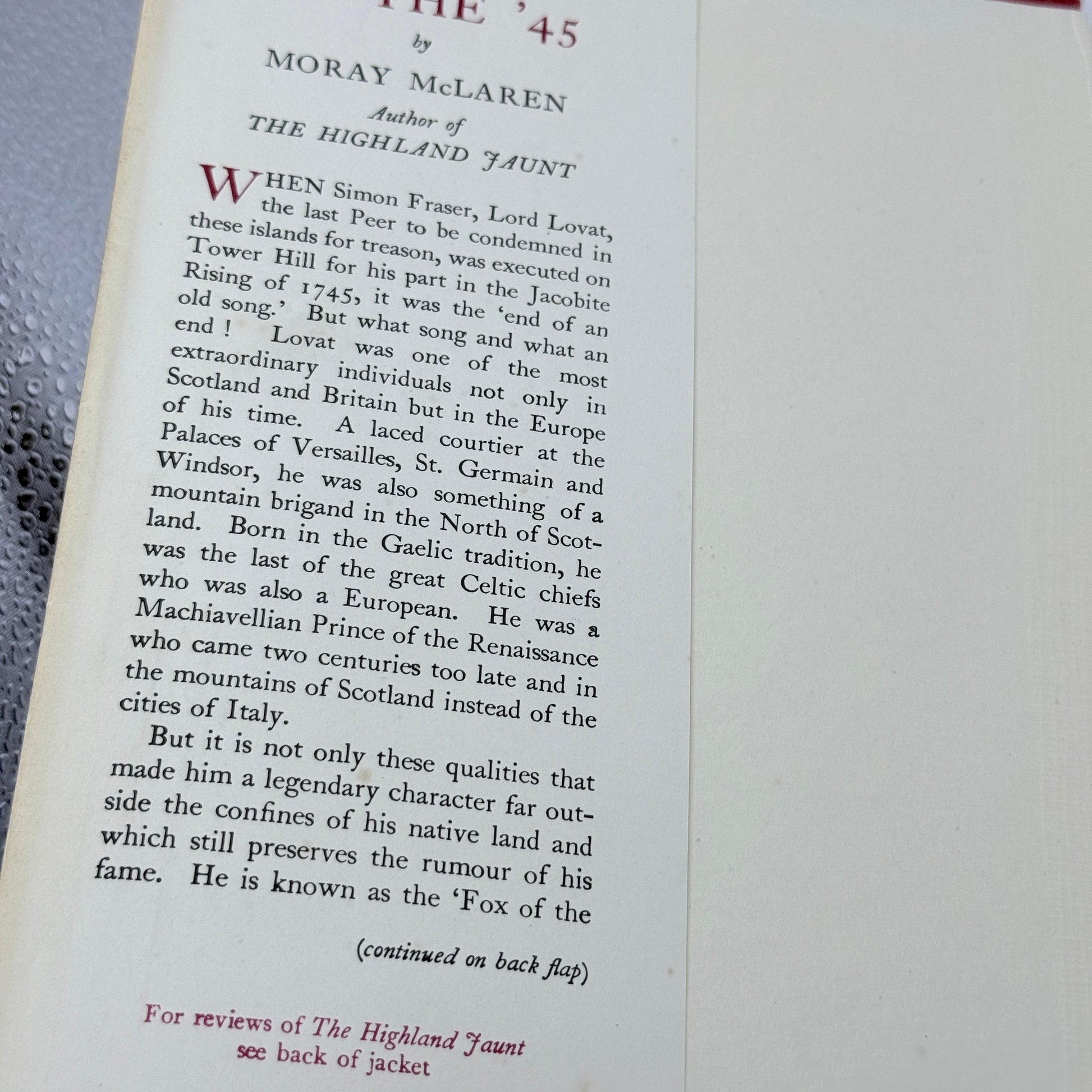 - Author Note: Moray McLaren is also the author of The Highland Jaunt.