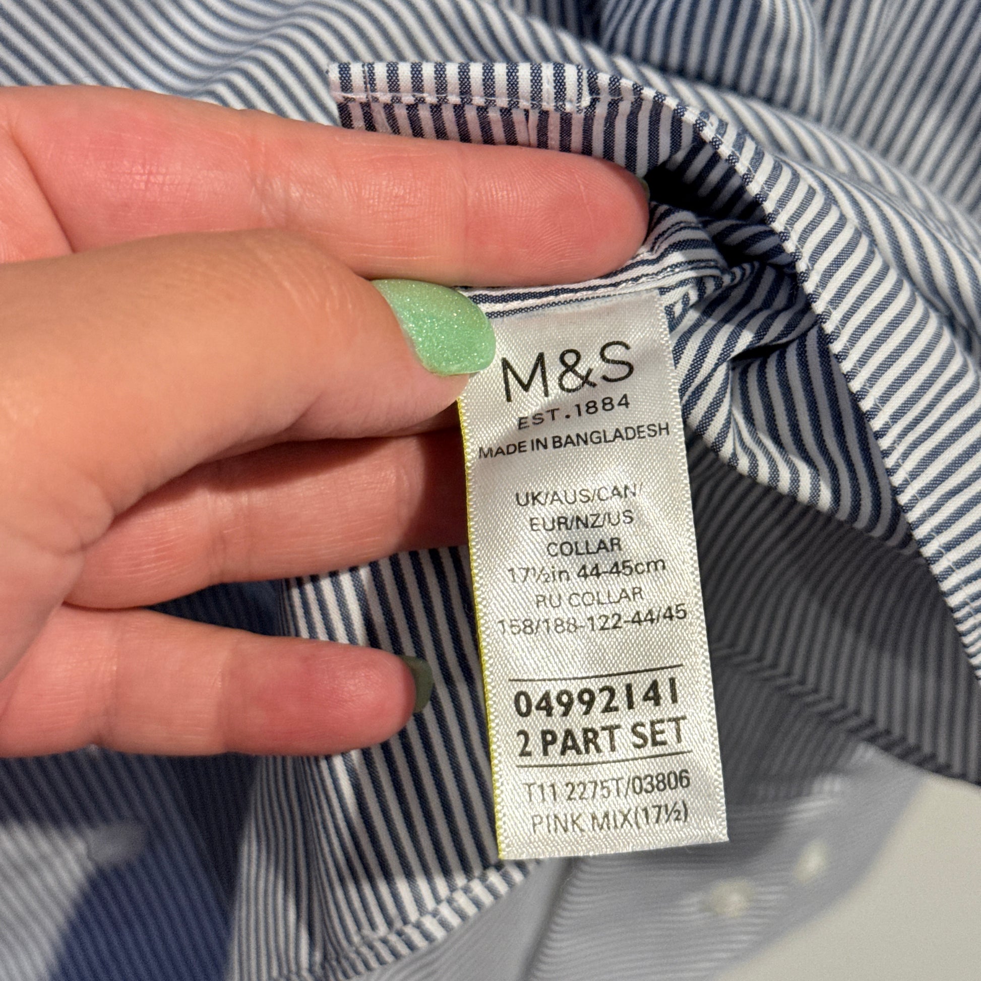 M & S Size 17.5 Striped Long-Sleeve Shirt
