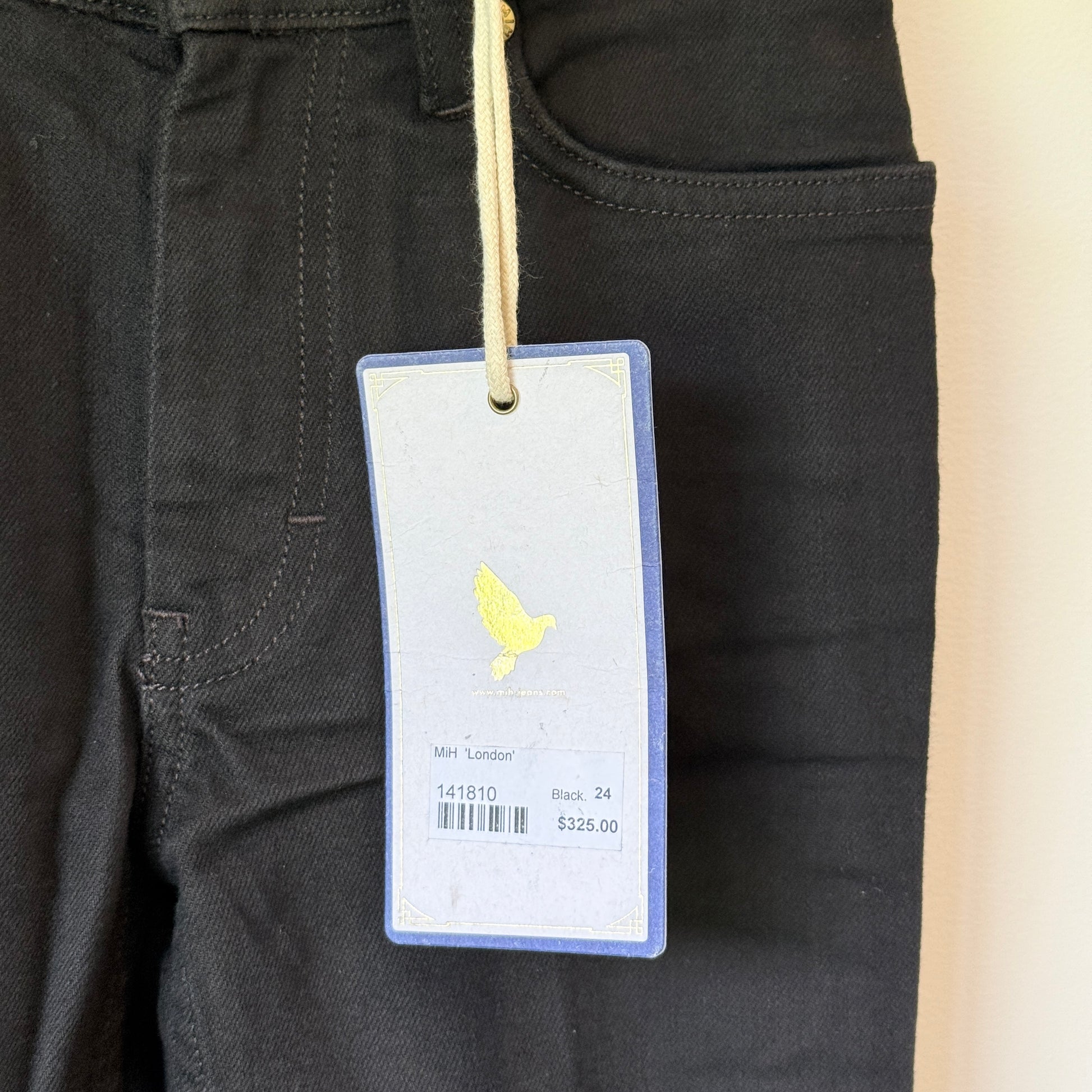 Discover the perfect blend of classic style and modern comfort with the MiH "London" jeans. These beautifully tailored pants feature a mid-rise waist and a subtle bootcut leg, creating a long, lean silhouette that transitions effortlessly from a busy day at the office to a relaxed dinner out. The sophisticated black wash offers endless versatility, making them a handy one to have on hand for any occasion. Crafted with signature gold-tone hardware and the iconic dove embroidery on the back pocket, these jeans represent the pinnacle of British denim design. Add this essential foundation piece to your wardrobe and experience a fit that truly feels like it was made just for you.
