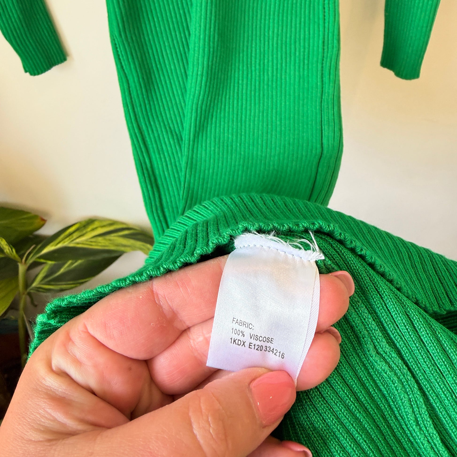 Mirrou Ribbed Knit Collared Midi Dress Green - Size S