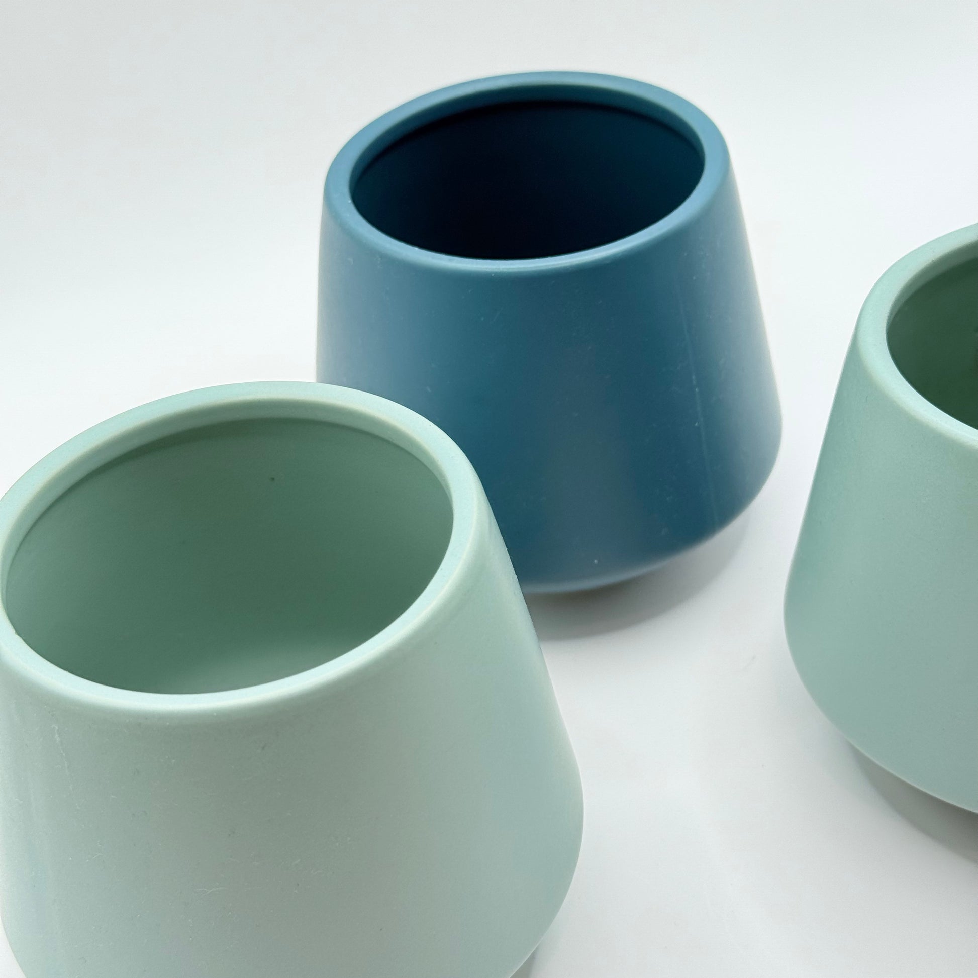 - Quantity: 3 pots (2 mint/seafoam, 1 denim blue)
