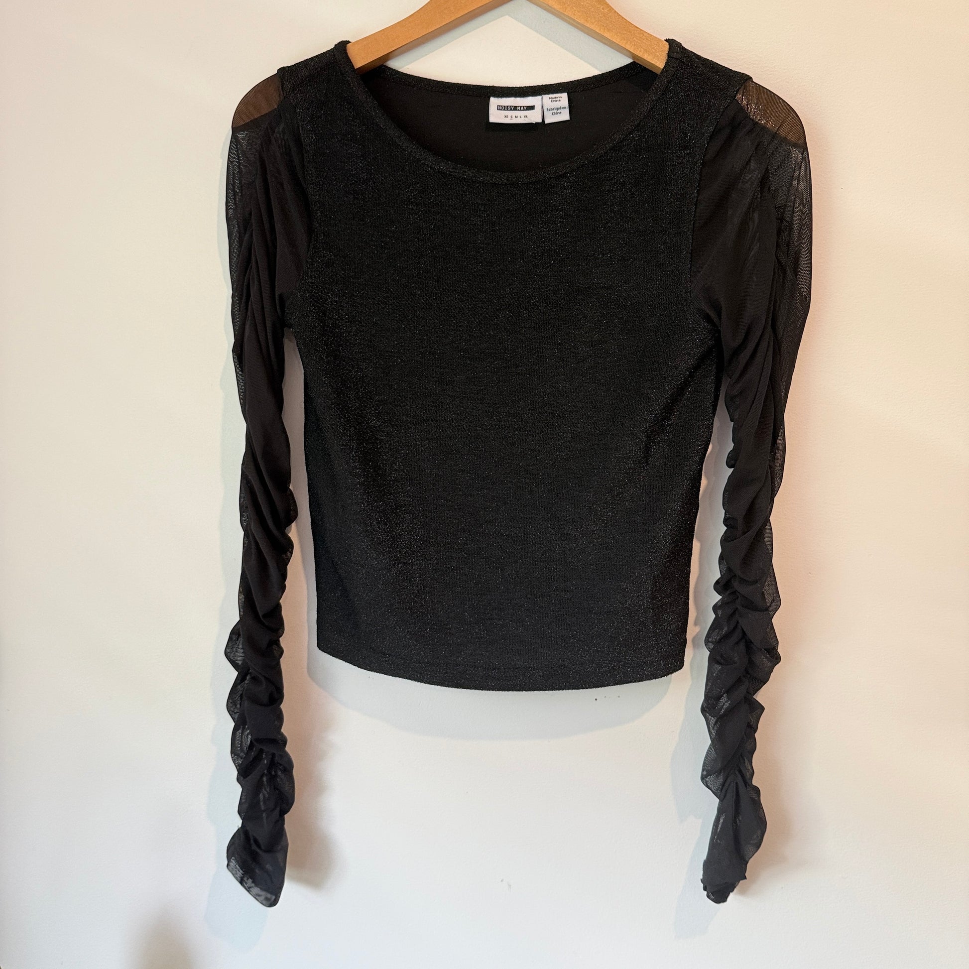 Noisy May Size S Black Long-Sleeve Cropped Blouse
