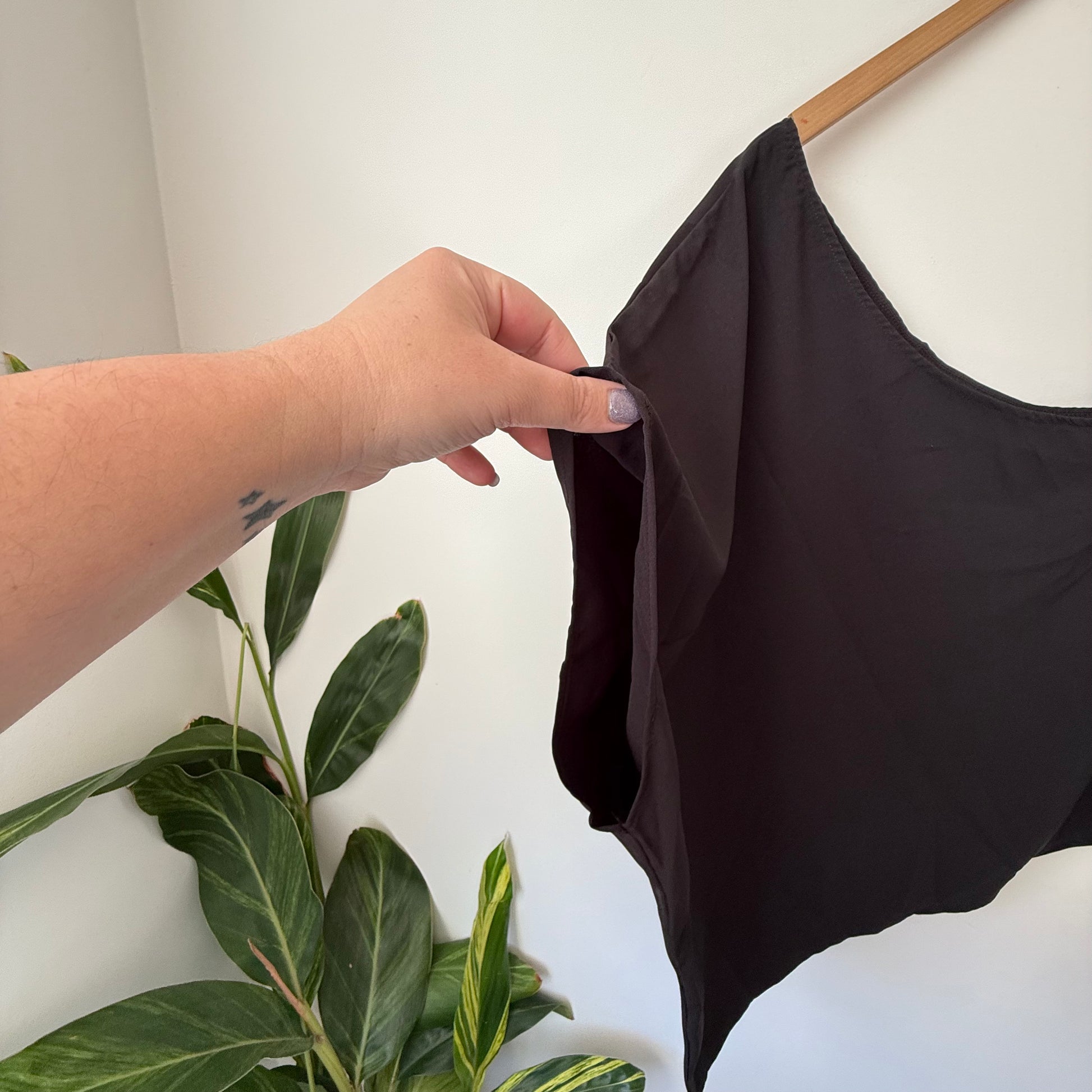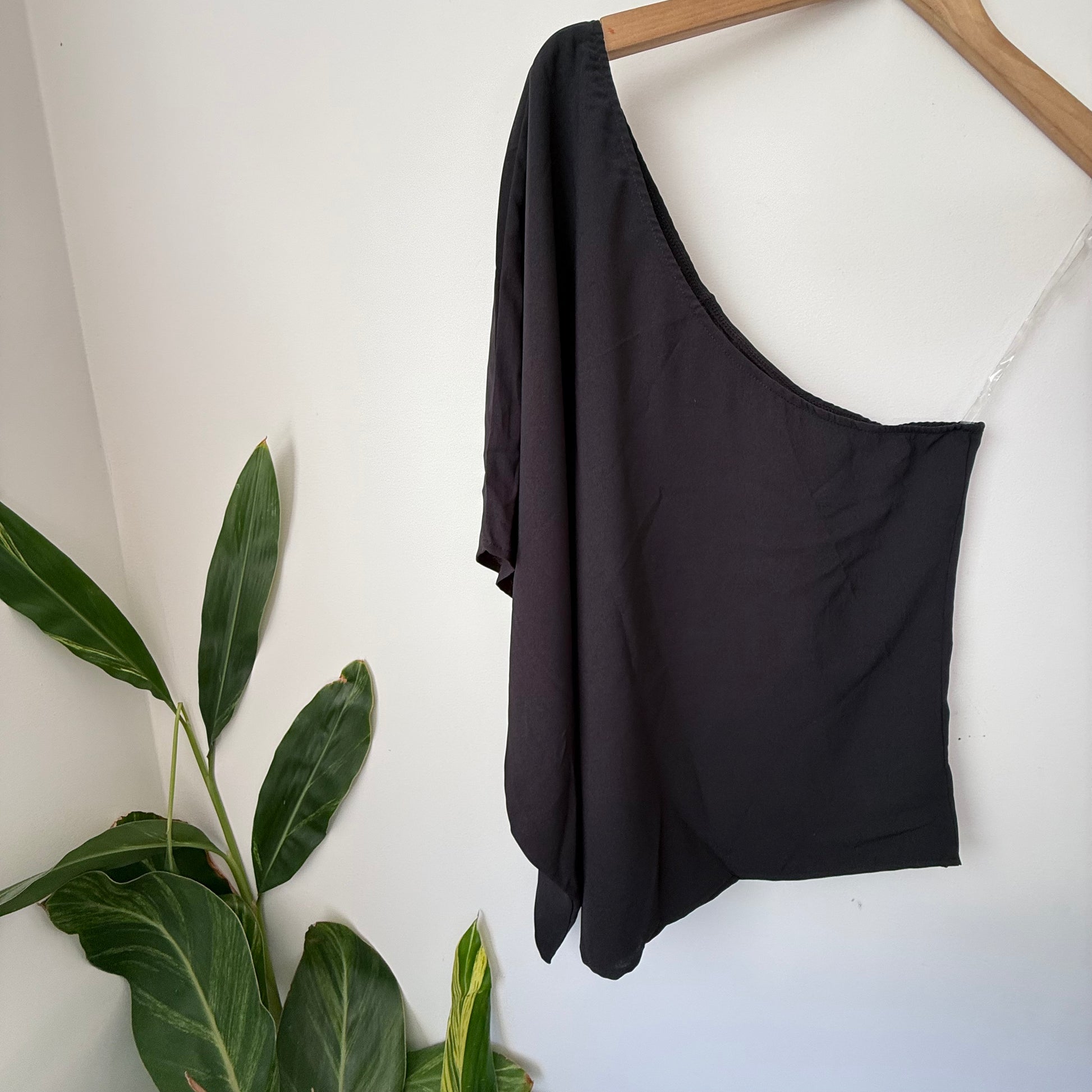 This top is a must-have if you’re looking to add a bit of modern elegance to your wardrobe! The one-shoulder design is super chic and makes a statement without trying too hard. The fabric has a beautiful smooth drape and movement, perfect for pairing with tailored trousers, a fitted skirt, or your favorite denim. Because it's a timeless black, it's incredibly versatile—you can dress it up with some bold jewellery or keep it simple for a sophisticated evening look. It's a handy one to have on hand for when you need to feel instantly stylish!