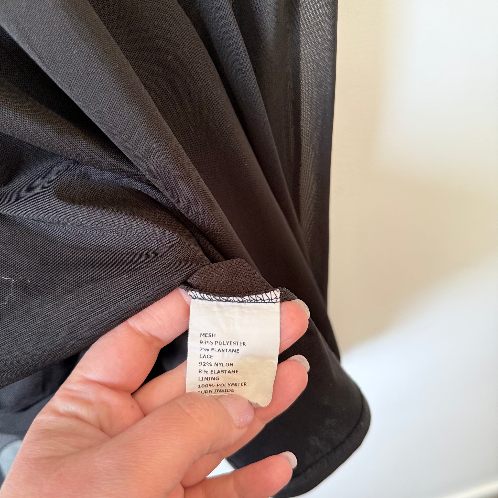 - Materials: Mesh: Polyester / Elastane, Lace: Nylon / Elastane, Lining: Polyester