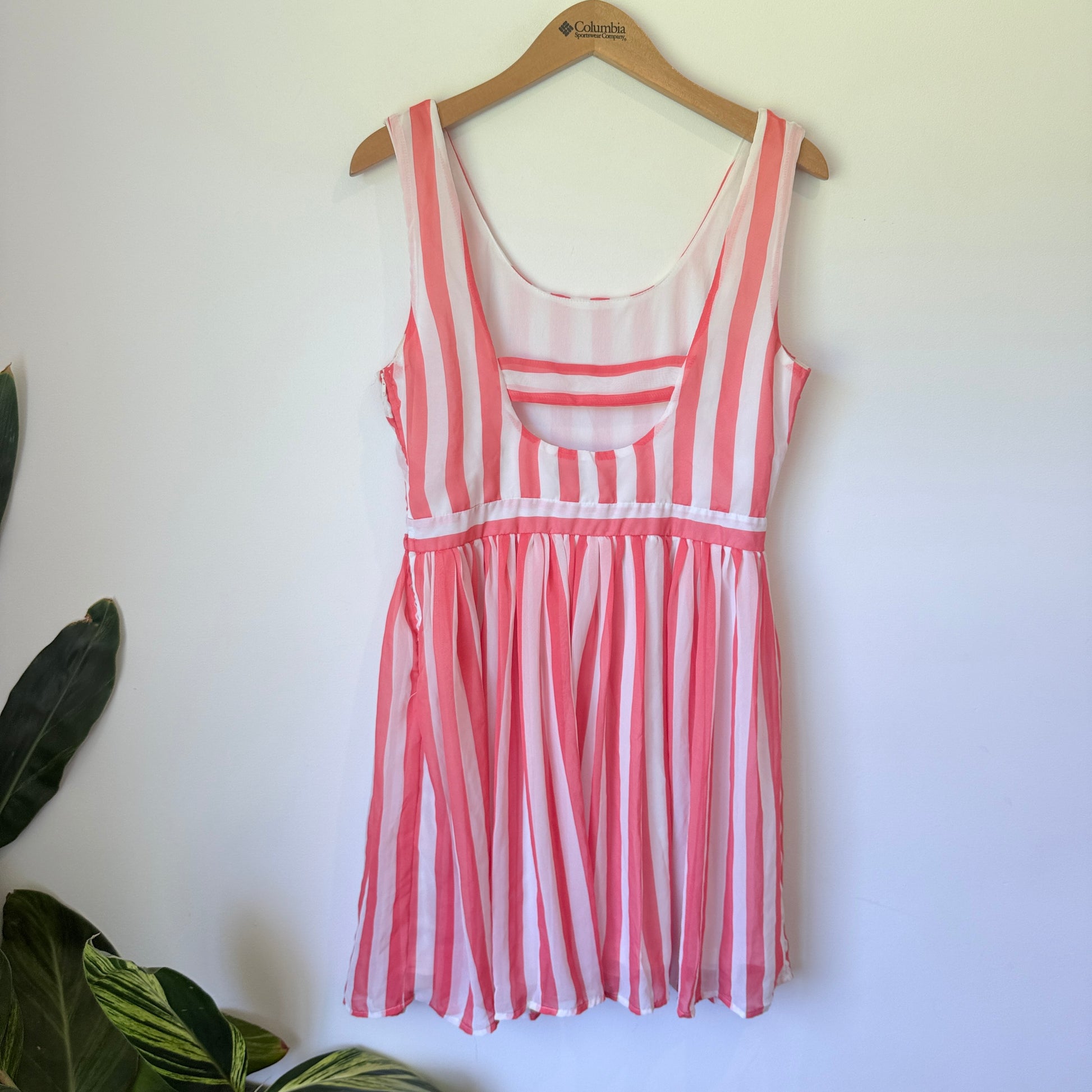 Pagani Striped Fit & Flare Dress Pink & White - Size 12