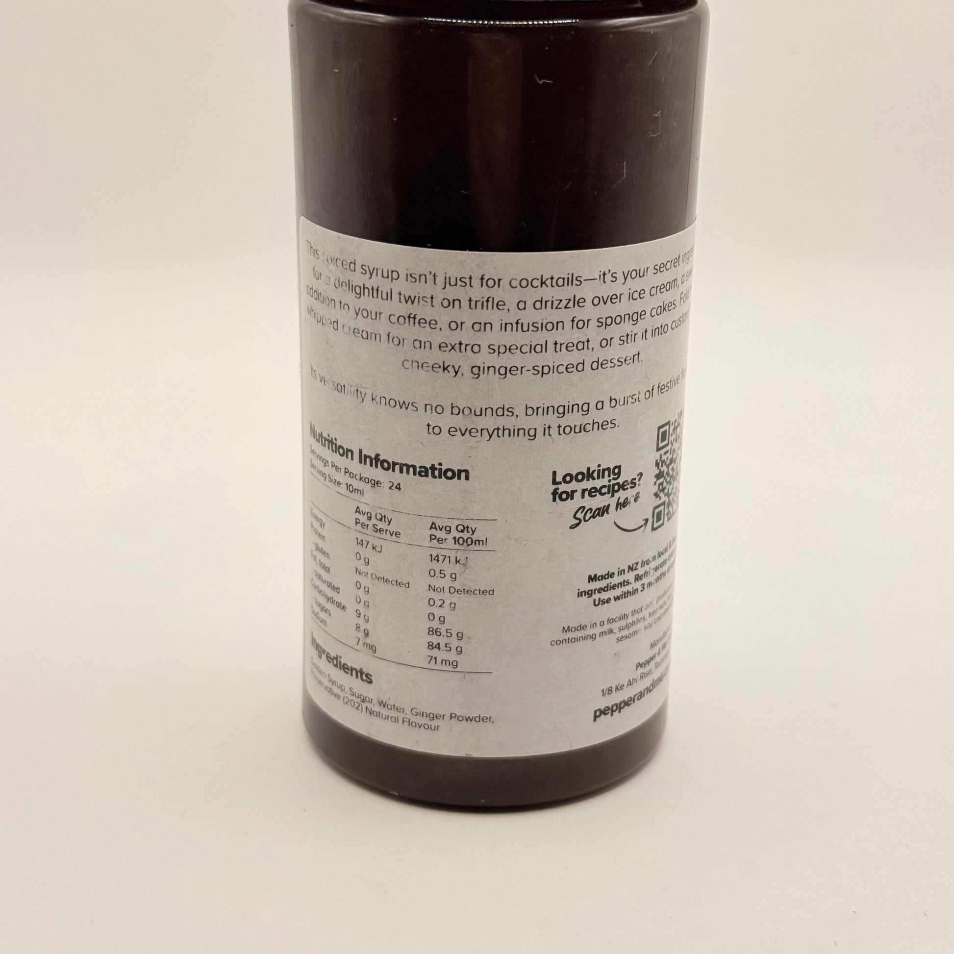 This is the gingerbread syrup you need to add a delightful twist to just about anything! This 240mL bottle of Pepper & Me Can't Catch Me brings a burst of cheeky, ginger-spiced flavour to every corner of your kitchen. It’s not just for cocktails; it’s perfect for swirling into your morning coffee or latte, drizzling over ice cream, or adding an infusion to your sponge cakes or whipped cream. It's super versatile and a handy one to have on hand when you want to make a simple dessert feel extra special.