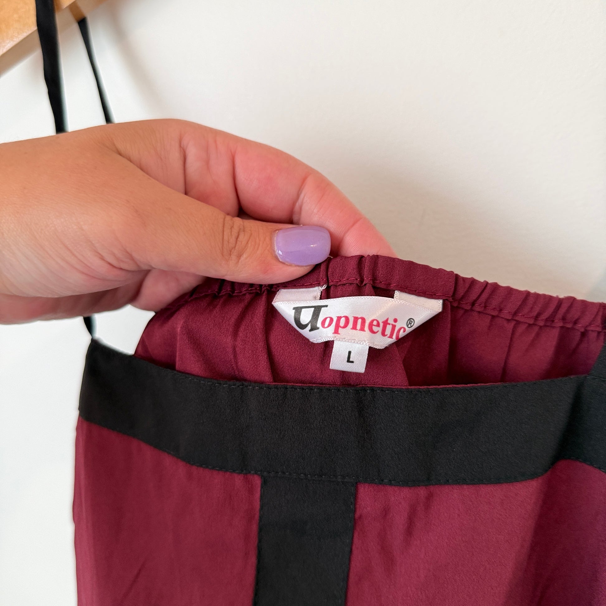 Popnetic Size L Burgundy Solid Peplum Top