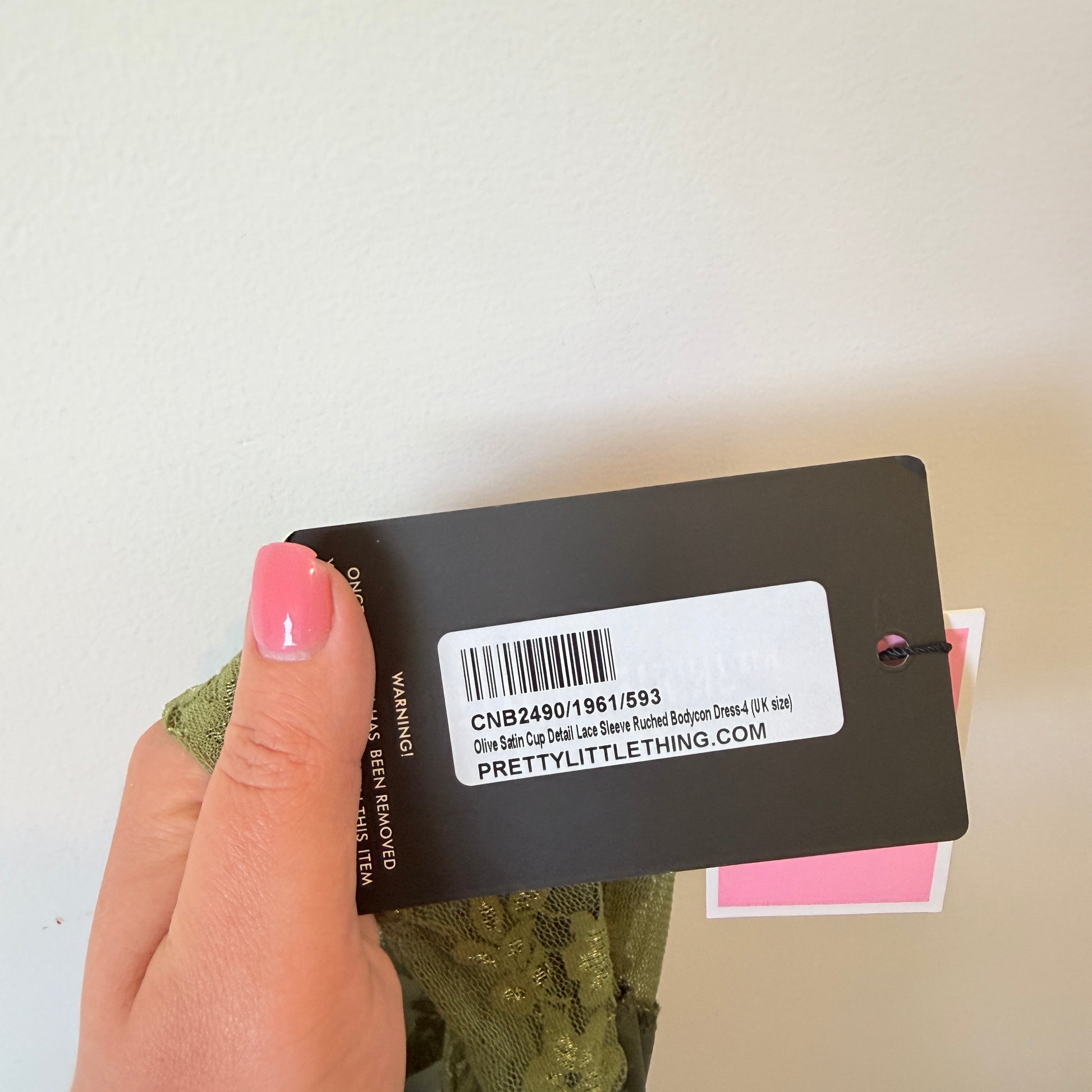 PrettyLittleThing Olive Green Satin & Lace Bodycon Dress - Size 4