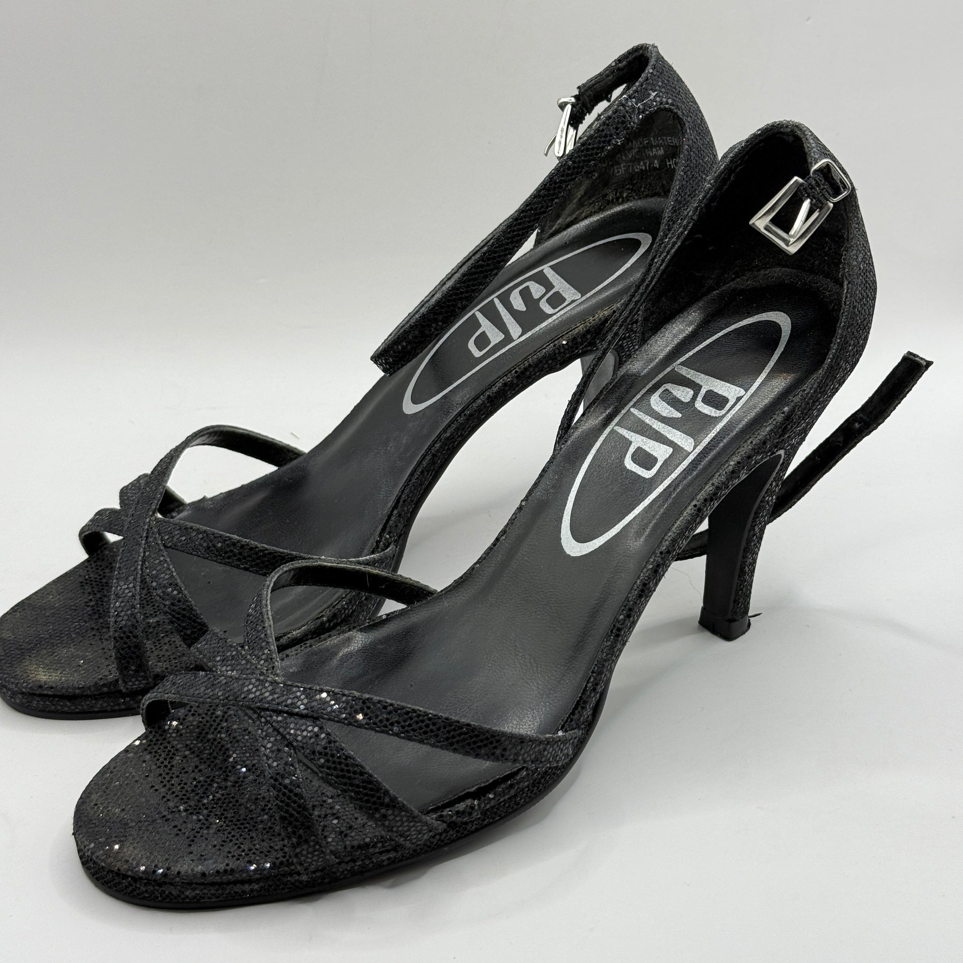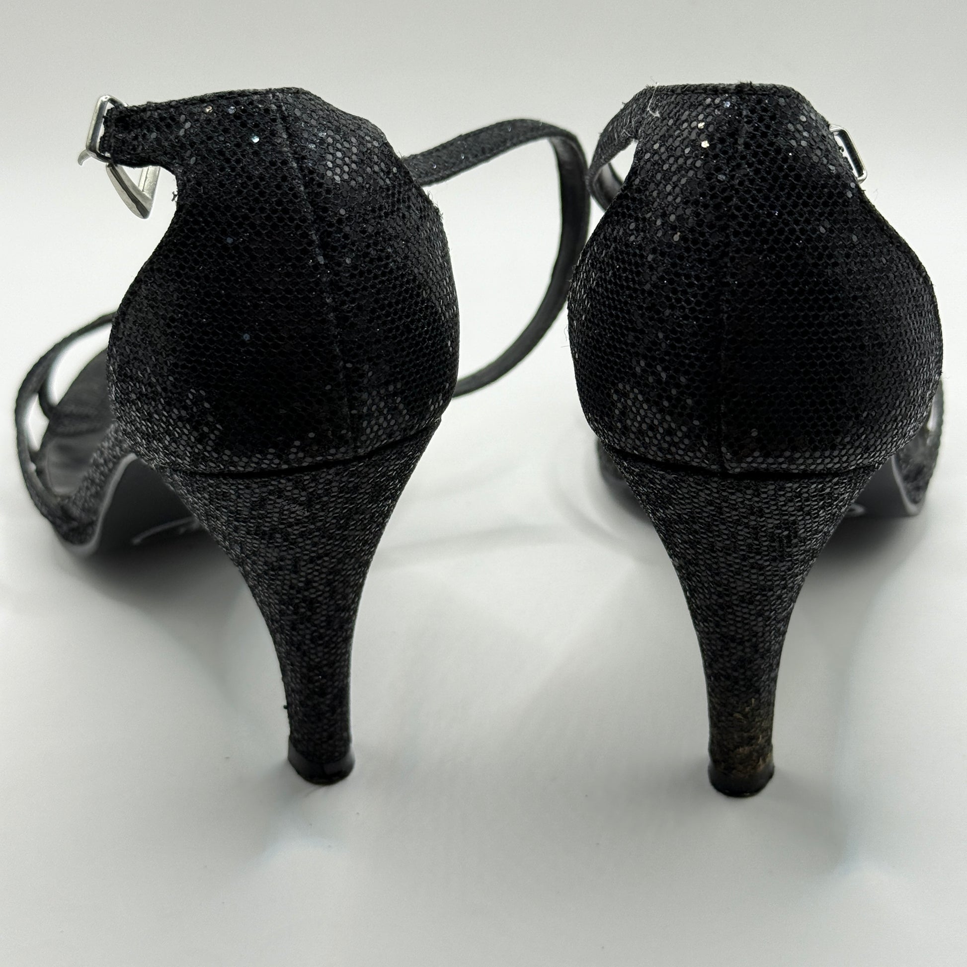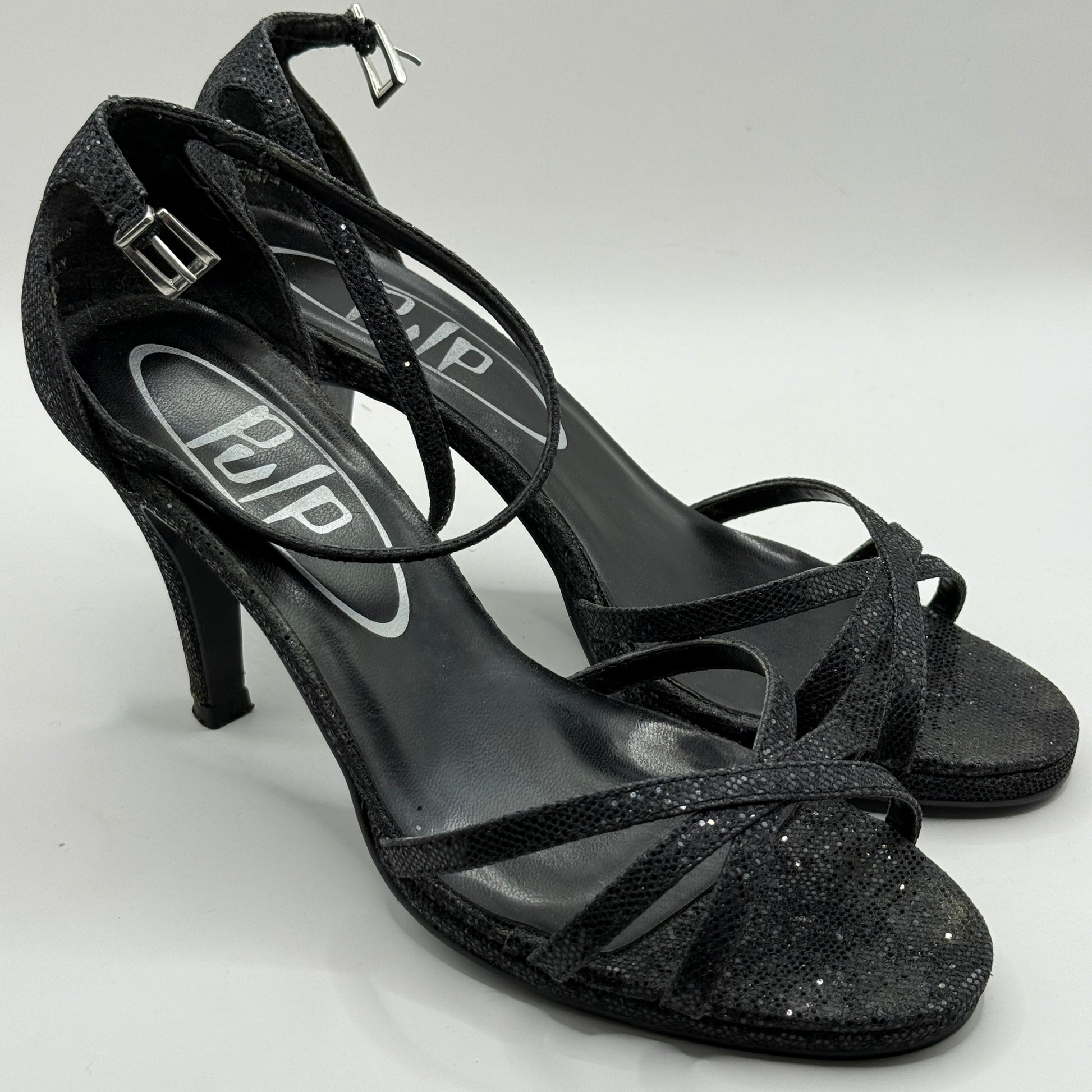 Pulp Black Glitter Ankle Strap Heels - Size 8