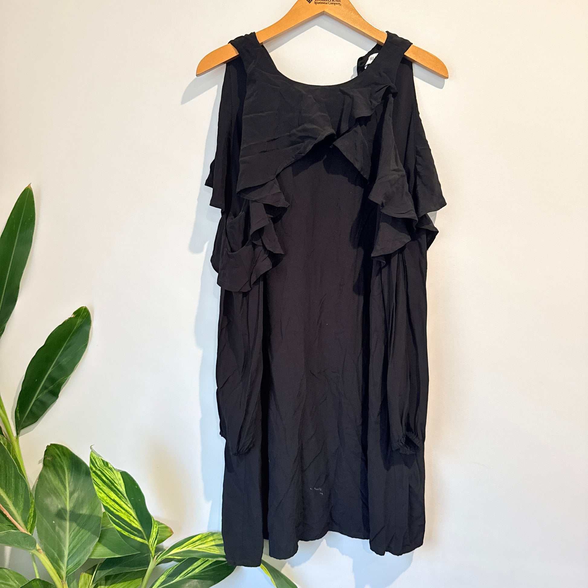 RUBY Cold Shoulder Ruffle Dress (Black) - Size 12