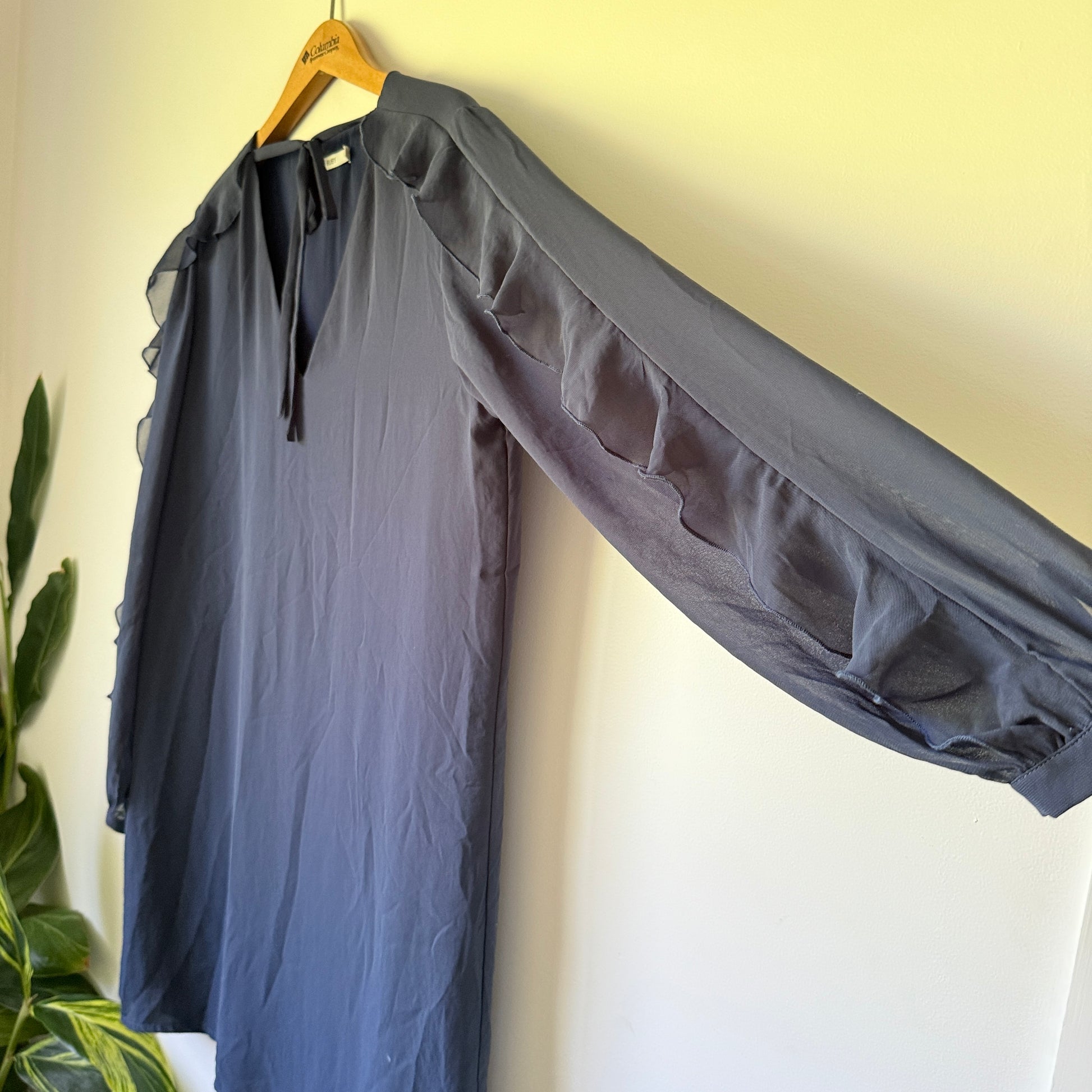 RUBY Long Sleeve Ruffle Mini Dress Navy Blue - Size 12