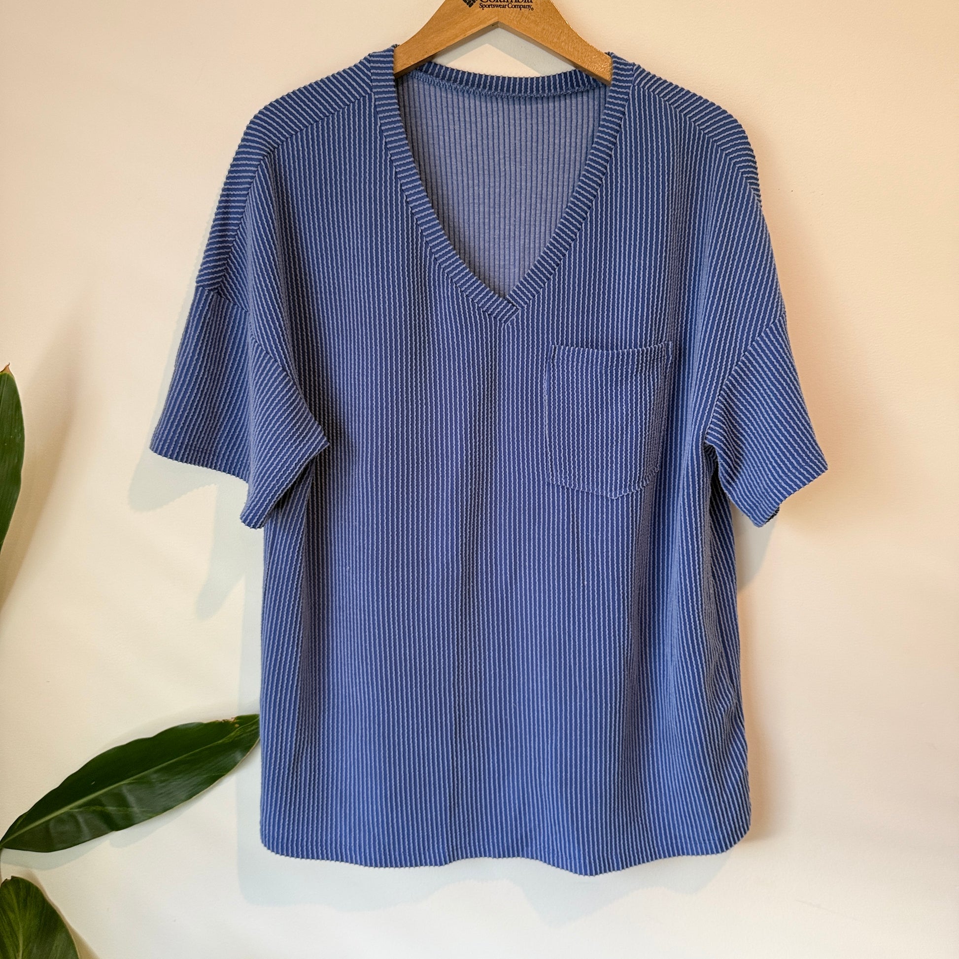 Size L Ribbed V-Neck T-Shirt