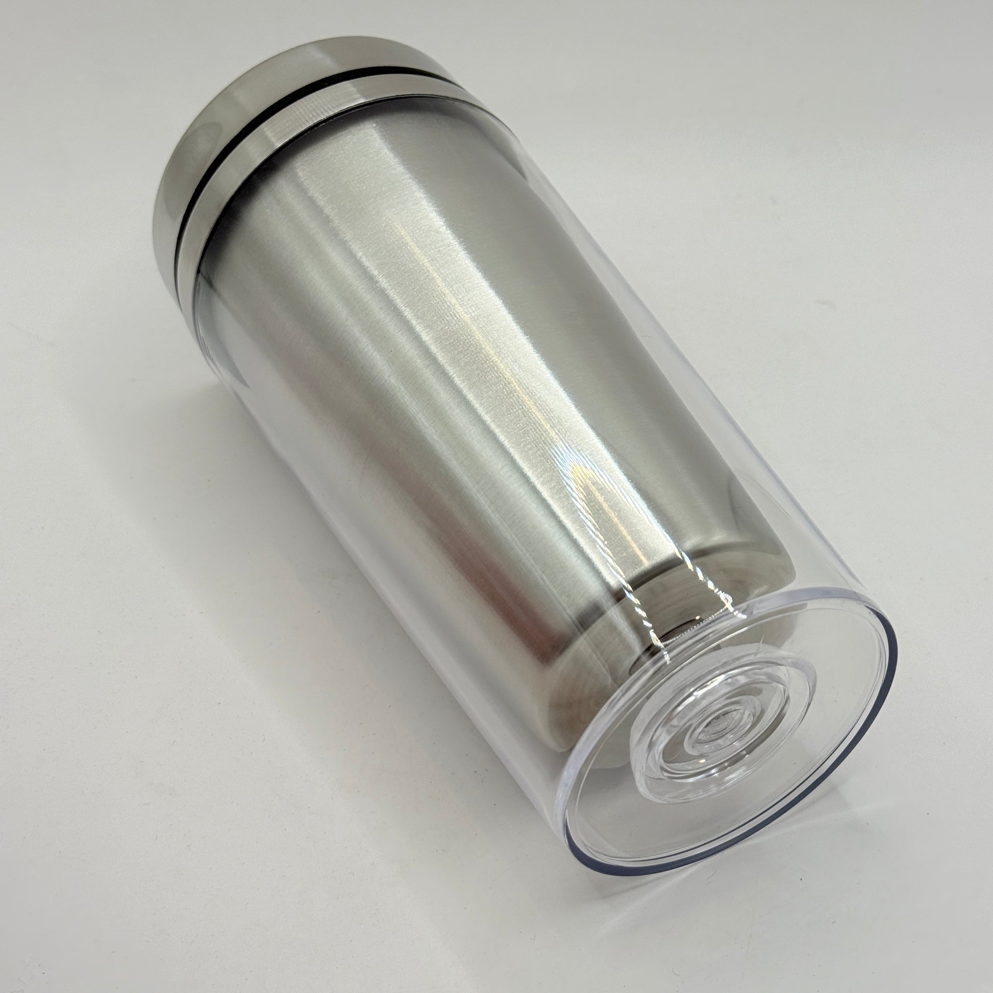 This stainless steel travel tumbler is a great pick if you’re after something sturdy, simple, and handy for hot or cold drinks on the go. The brushed metal body gives it a clean, modern look, while the slide-open lid helps prevent spills when you’re moving about. Best of all the clear plastic cavity around the outside can be filled or decorate however you like from your favourite photo or picture or even small items!