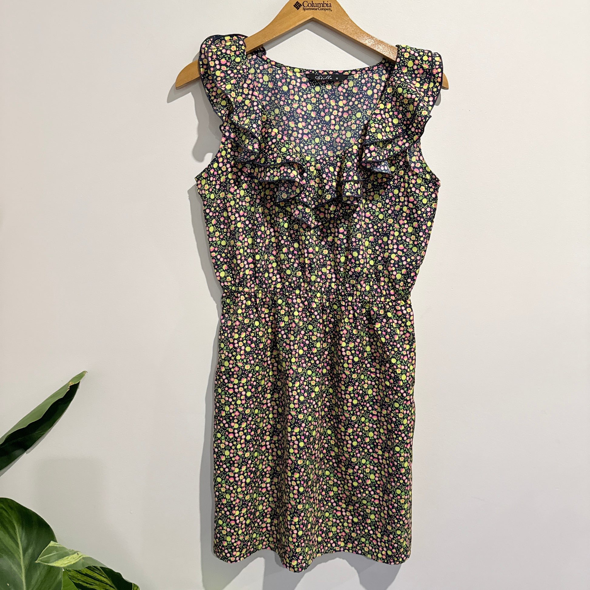 Stella Floral Ruffle Neck Mini Dress - Size 10