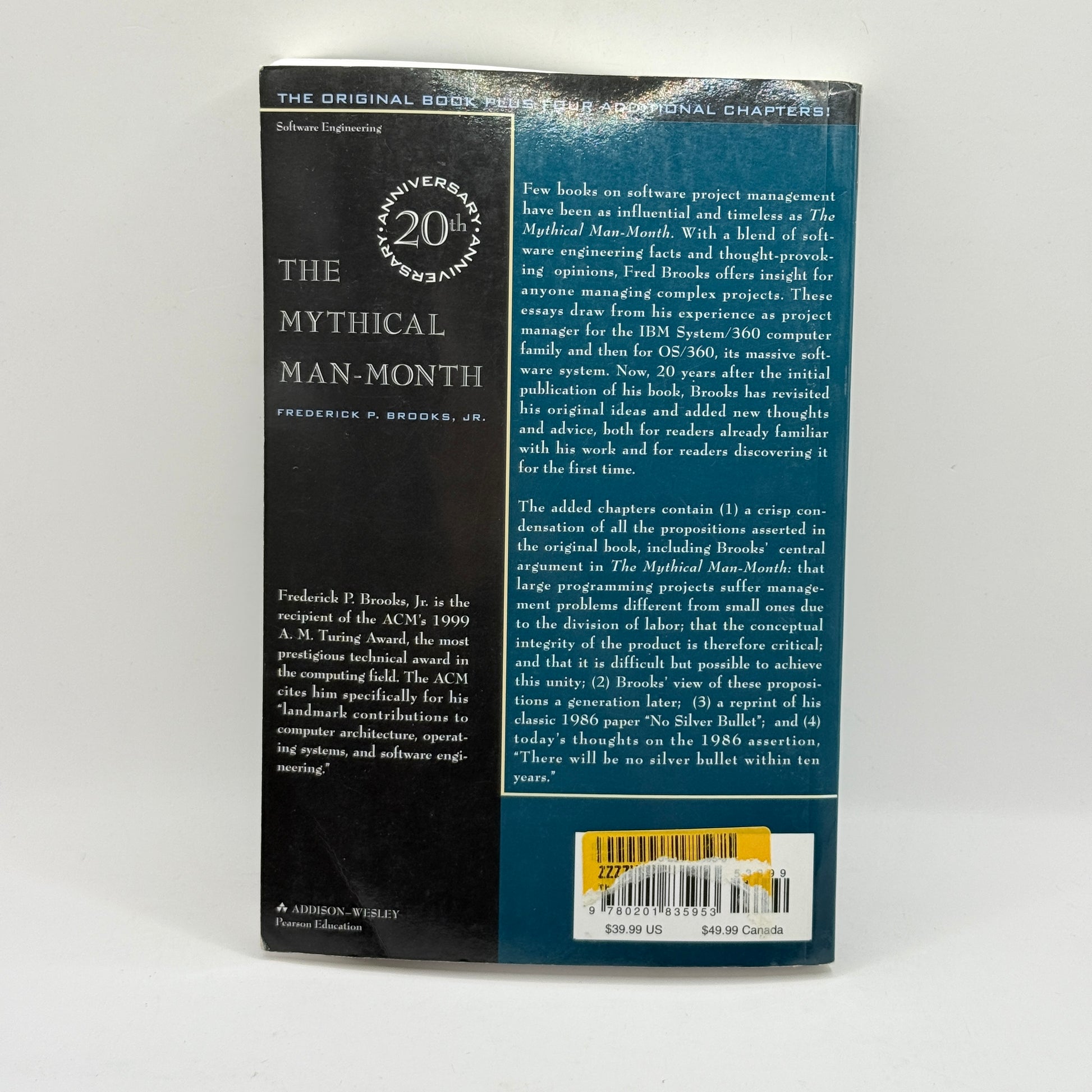 The added chapters contain (1) a crisp condensation of all the propositions asserted in the original book, including Brooks' central argument in The Mythical Man-Month: that large programming projects suffer management problems different from small ones due to the division of labor; that the conceptual integrity of the product is therefore critical; and that it is difficult but possible to achieve this unity; (2) Brooks' view of these propositions a generation later; (3) a reprint of his classic 1986 paper "No Silver Bullet"; and (4) today's thoughts on the 1986 assertion, "There will be no silver bullet within ten years."