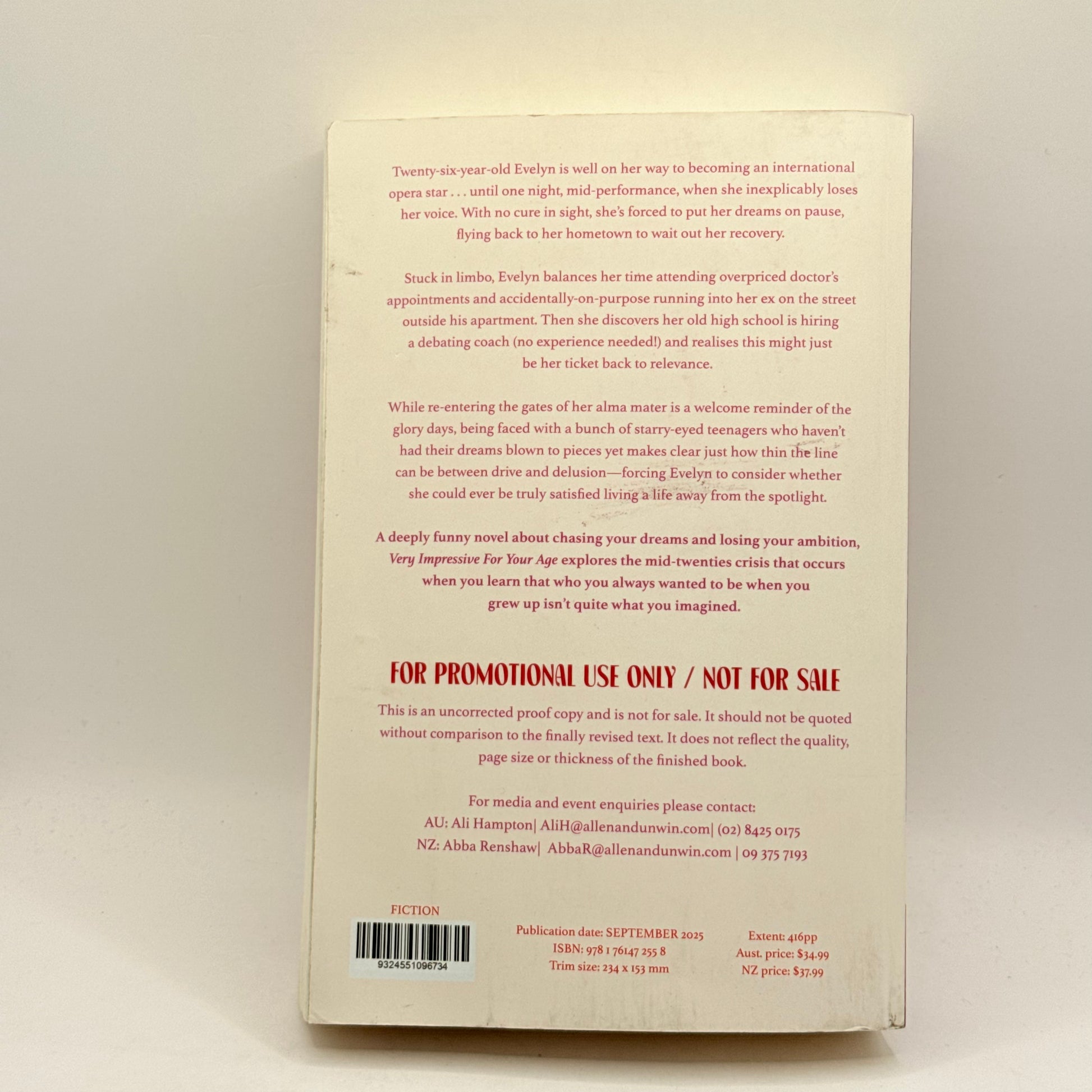 A deeply funny novel about chasing your dreams and losing your ambition, Very Impressive For Your Age explores the mid-twenties crisis that occurs when you learn that who you always wanted to be when you grew up isn't quite what you imagined.